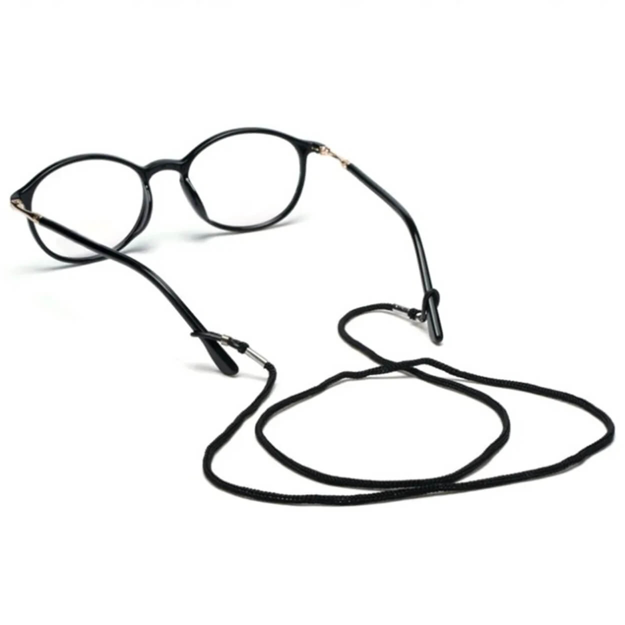 Glasögonsnöre i klassisk modell som gör det enkelt att bära glasögon runt halsen när de inte används. Snodden hjälper till att minska risken att lägga ifrån sig eller tappa solglasögon, läsglasögon och andra glasögon i vardagen. Längden på cirka 70 cm ger en bekväm placering så att glasögonen snabbt kan tas på och av vid behov. Passar som ett praktiskt tillbehör hemma, på jobbet eller på resan.