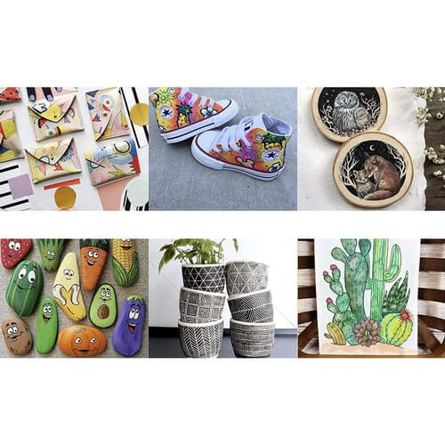 Akrylpennor i set om 12 för pyssel, illustration och märkning på många material. Den ultrafina spetsen på 0,7 mm ger kontrollerade linjer och gör det lätt att rita detaljer, skriva och fylla mindre ytor. Akrylbaserat bläck torkar snabbt och ger en opak, hållbar finish som syns tydligt även på mörkare underlag. Pennorna fungerar på papper och canvas samt på hårdare ytor som trä, keramik och glas. Även tyg och skor kan dekoreras för personliga projekt.