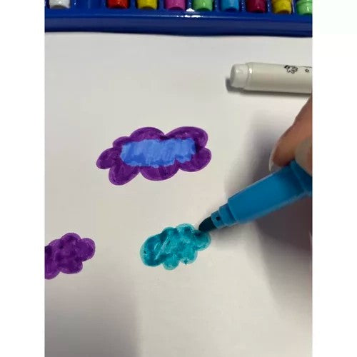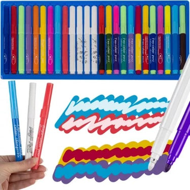 Magiska tuschpennor som låter teckningar ändra färg när du ritar över med en vit marker. Färglägg först med någon av de 21 färgerna och använd sedan en av de 4 vita markörerna för att skapa nya nyanser, dolda meddelanden och tydliga effektlinjer. Setet passar för pyssel, skolarbete och kreativa projekt där du vill få mer variation än med vanliga pennor. Pennorna är enkla att använda och ger snabba resultat utan extra verktyg.