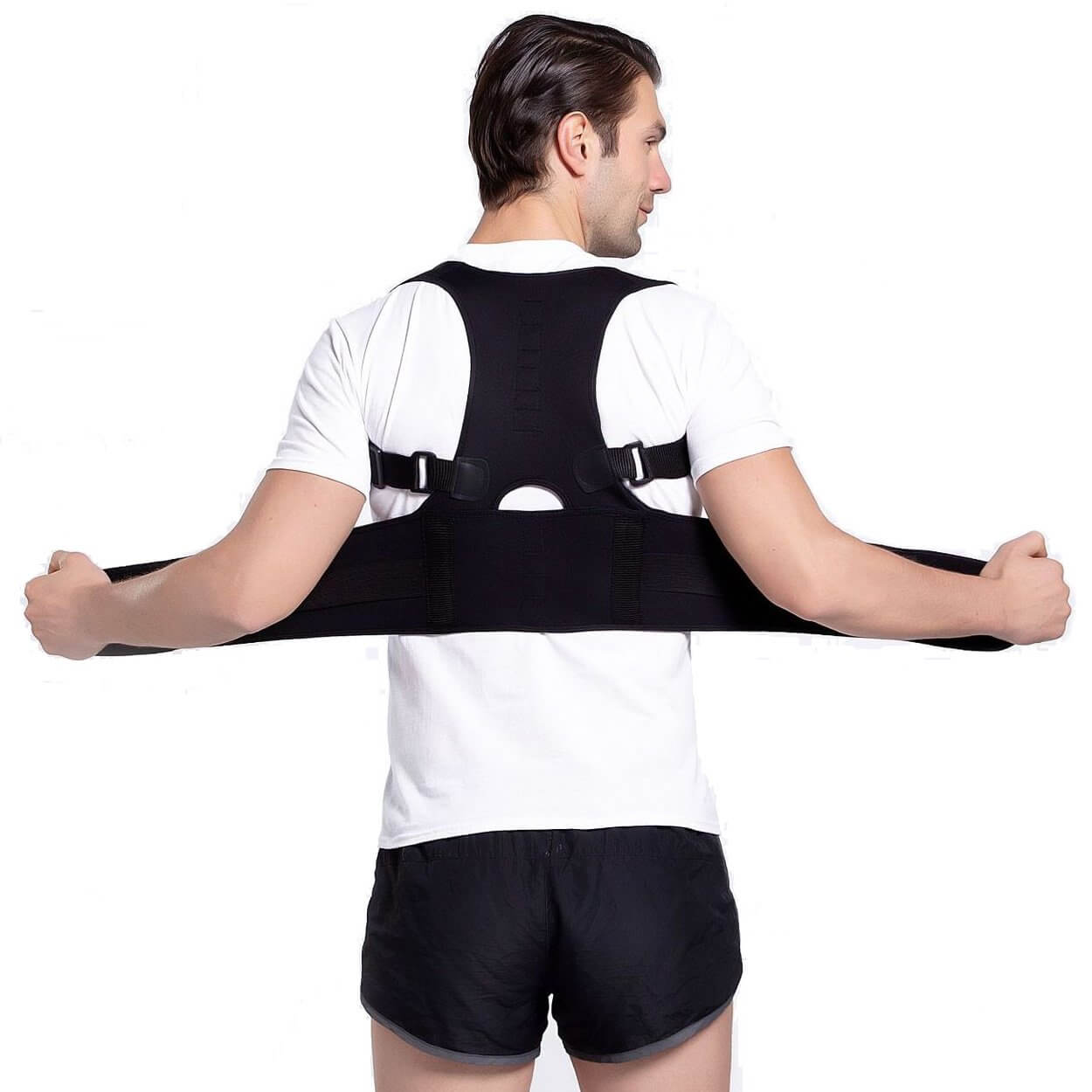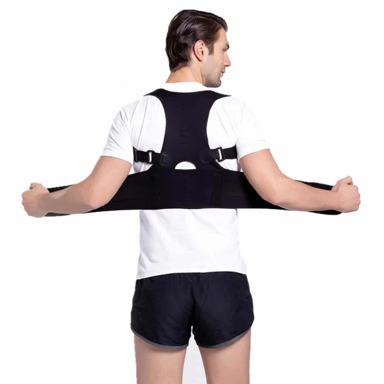 Hållningsväst som ger stabilt ryggstöd och hjälper till att hålla axlar och rygg i en mer korrekt position. Stödet kan bidra till att minska belastning vid stillasittande arbete och vid vardagliga aktiviteter där hållningen lätt sjunker. Västen är tillverkad i ett följsamt stretchmaterial som gör den bekväm att bära även under kläder. Knäppning på framsidan gör den snabb att ta på och enkel att justera efter behov. Passar både kvinnor och män i one size XL upp till 105 cm omkrets.