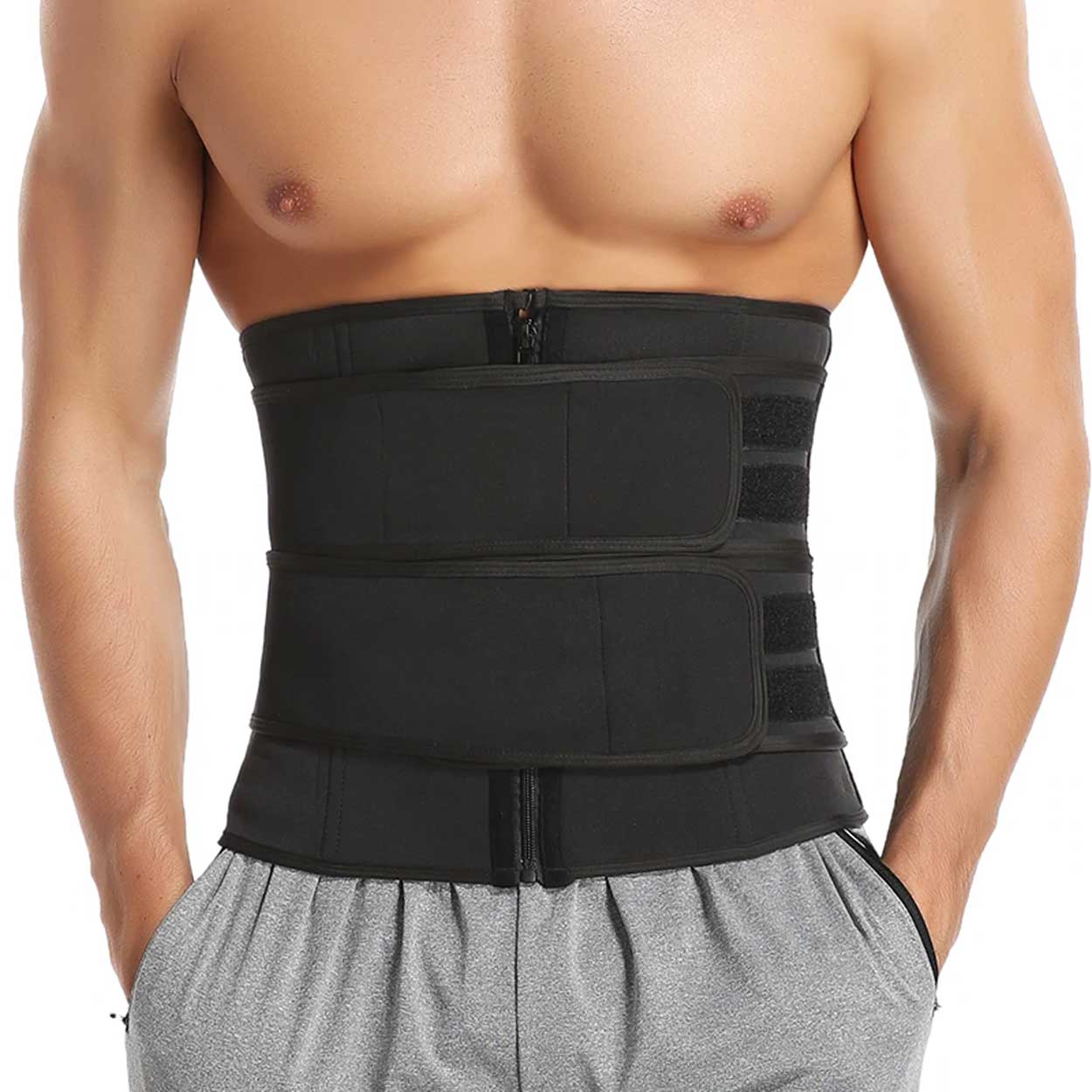 Midjetränare i stretchmaterial som ger kompression runt midjan och samtidigt stöd för ryggen. Konstruktionen med dragkedja och kardborre gör det enkelt att få en fast, justerbar passform som sitter på plats vid träning eller under vardagskläder. Bältet är utformat för att bidra till bättre hållning och en mer stabil känsla i bålen. Materialmixen i polyester, spandex, microfiber och akryl ger följsamhet och rörelsefrihet. Plagget är litet i storleken, så välj gärna minst en storlek större än normalt.