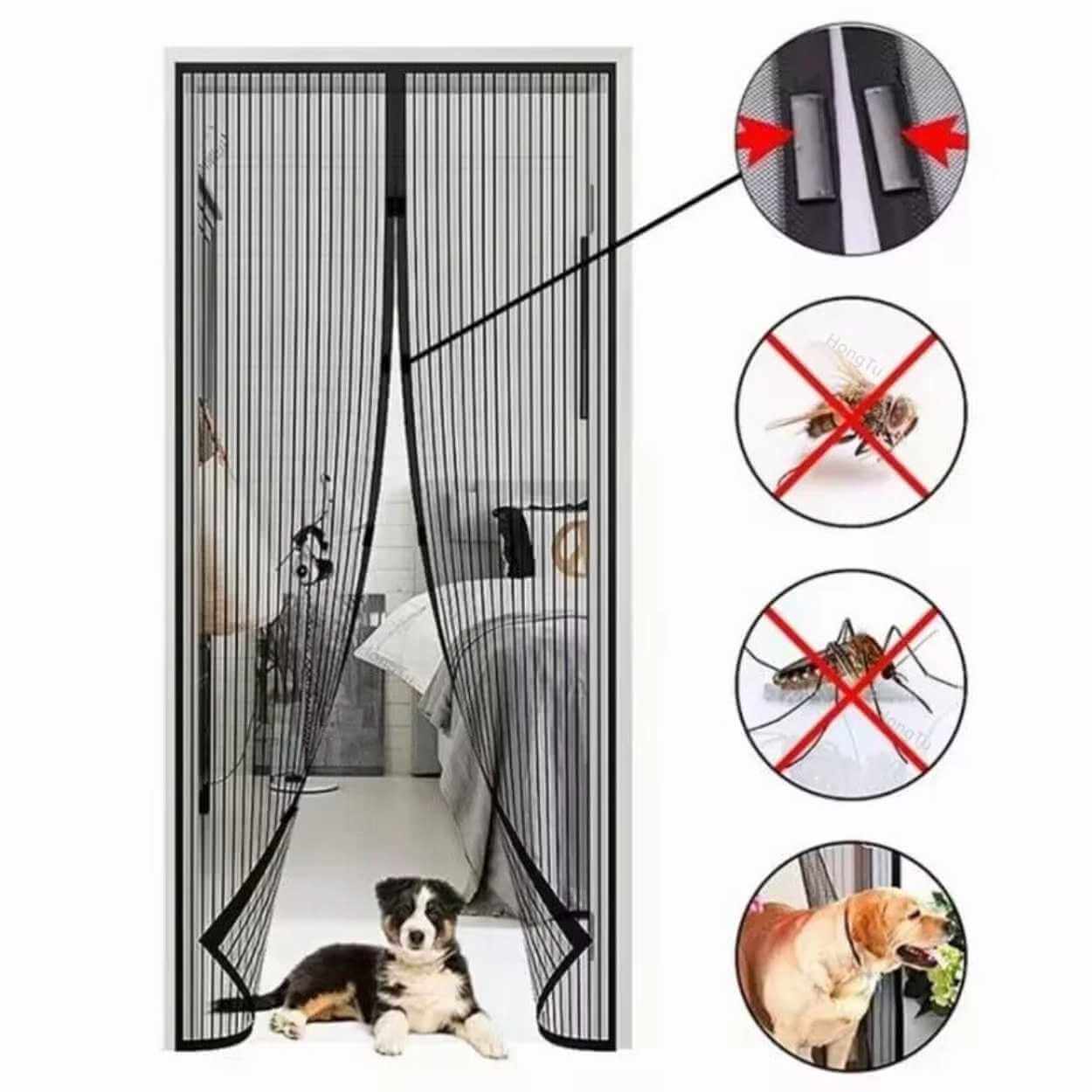 Magnetiskt myggnät för dörr som håller mygg, flugor och andra insekter ute samtidigt som luft kan cirkulera. Den magnetiska öppningen stänger igen automatiskt efter att man passerat, vilket gör det smidigt vid frekvent in- och utgång. Nätet monteras utan verktyg och fästs enkelt med medföljande nålar. Formatet 210 x 100 cm passar många vanliga dörröppningar och fungerar både i hem och vid altan- eller balkongdörr. Konstruktionen är praktisk även när husdjur ska kunna ta sig igenom.