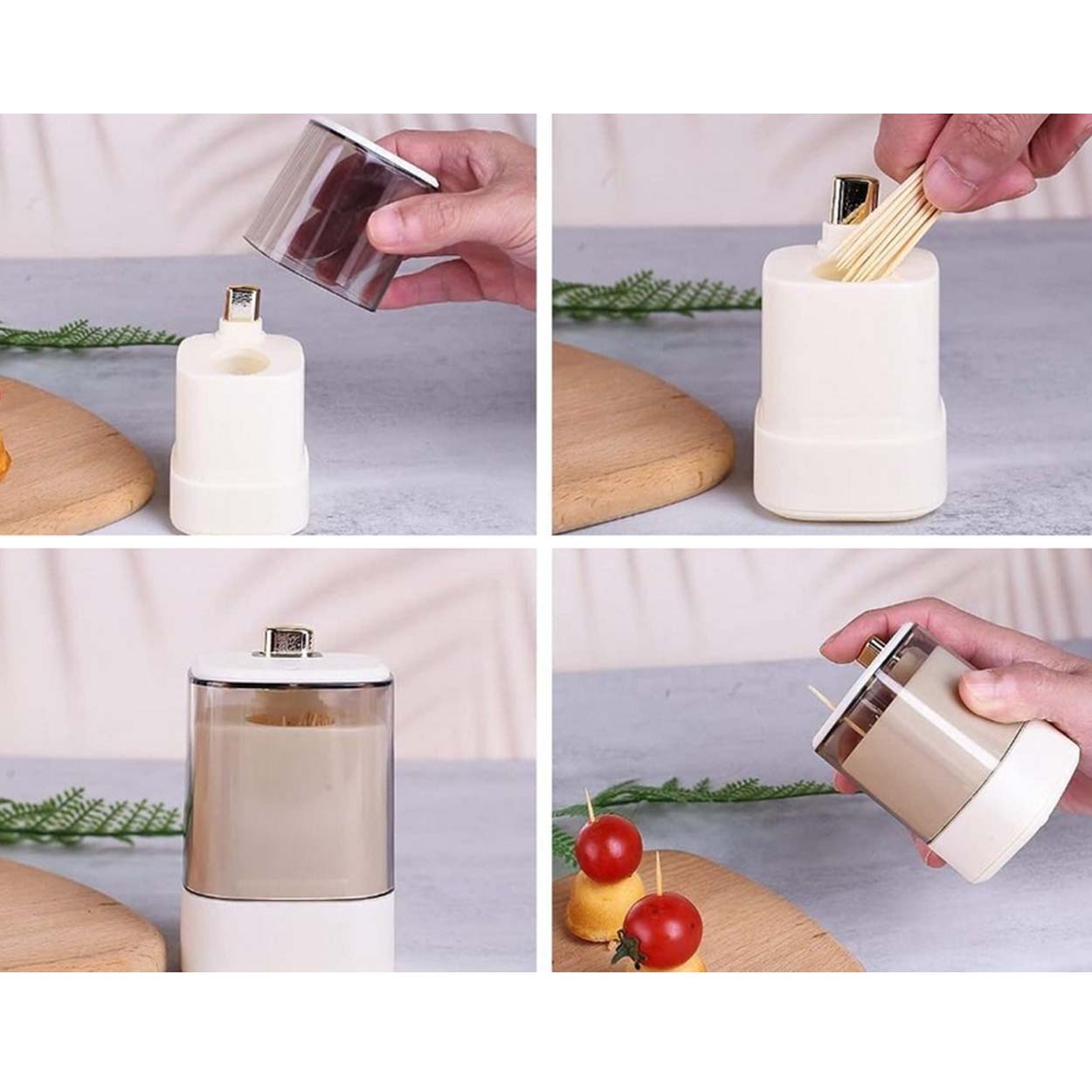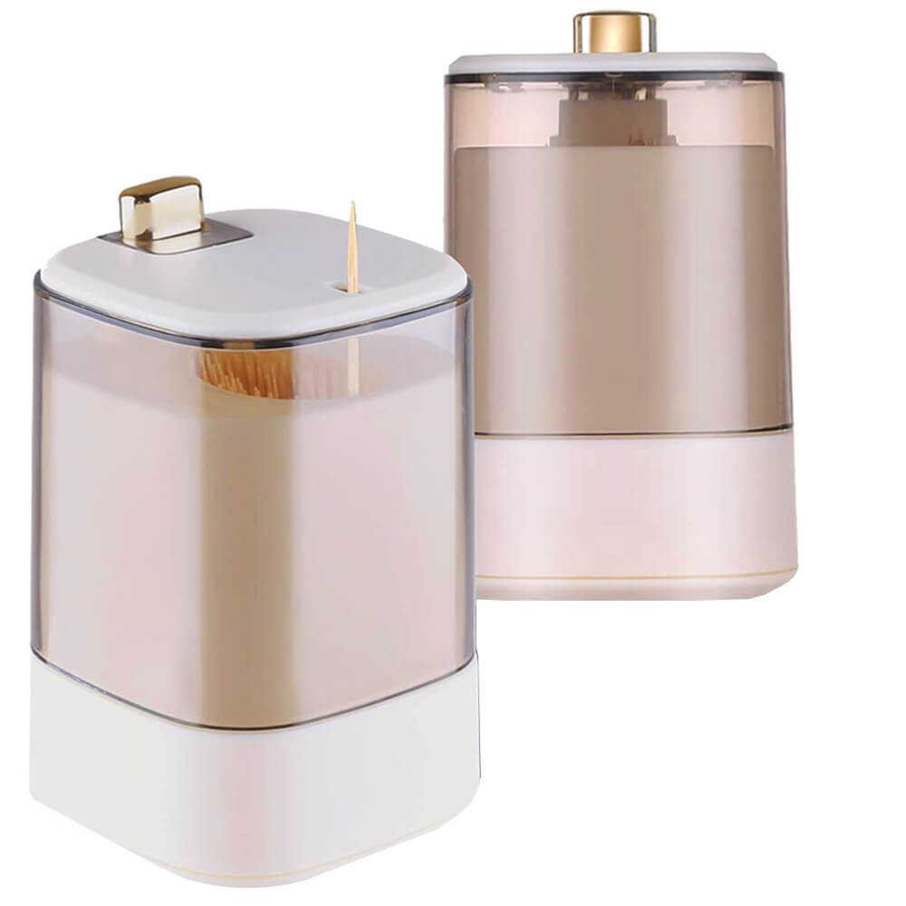 Tandpetarhållare med automatisk dispenser som gör det enkelt att ta en tandpetare i taget med ett knapptryck. Lösningen ger mer hygienisk hantering eftersom övriga tandpetare ligger skyddade i behållaren. Passar bra på köksbänk, matbord eller vid servering där snabb åtkomst behövs utan att leta i lådor. Dispensern är anpassad för tandpetare upp till 6,5 cm och har ett kompakt format som tar liten plats men ändå är lätt att greppa och använda i vardagen.