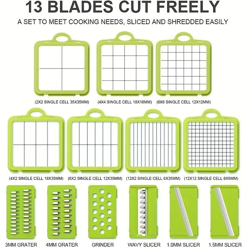 Grönsaksskärare / mandolin – skiva hacka riva – 13 blad, ägguleavskiljare, skalare