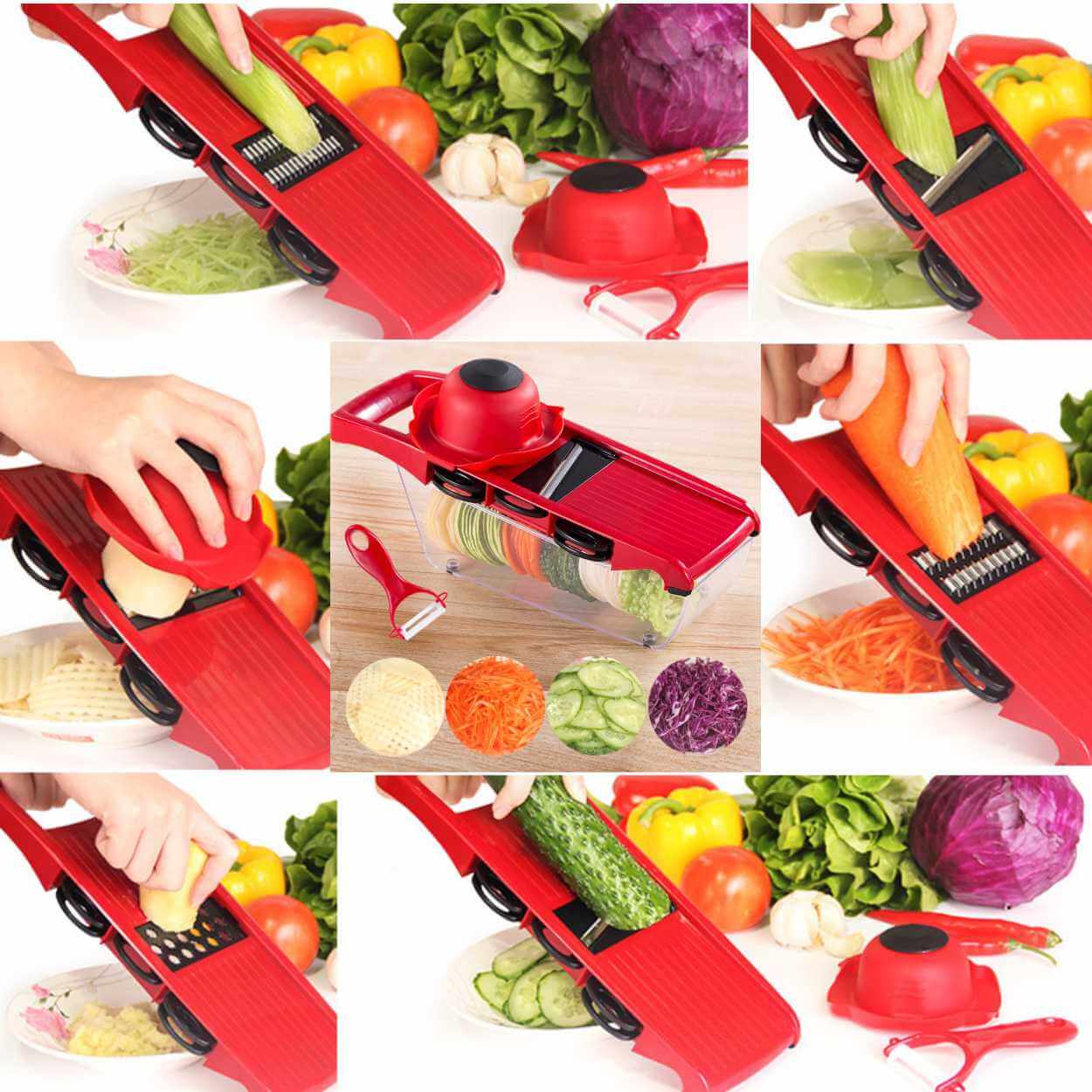 Mandolin / grönsaksskärare – skiva strimla riv – 6-i-1