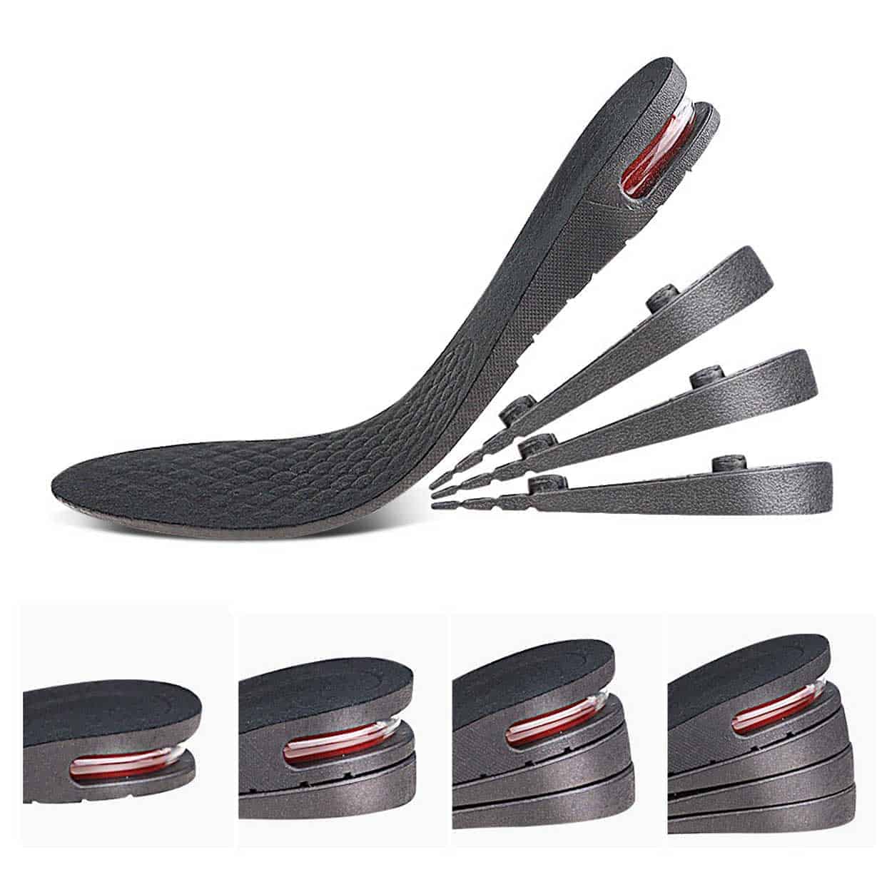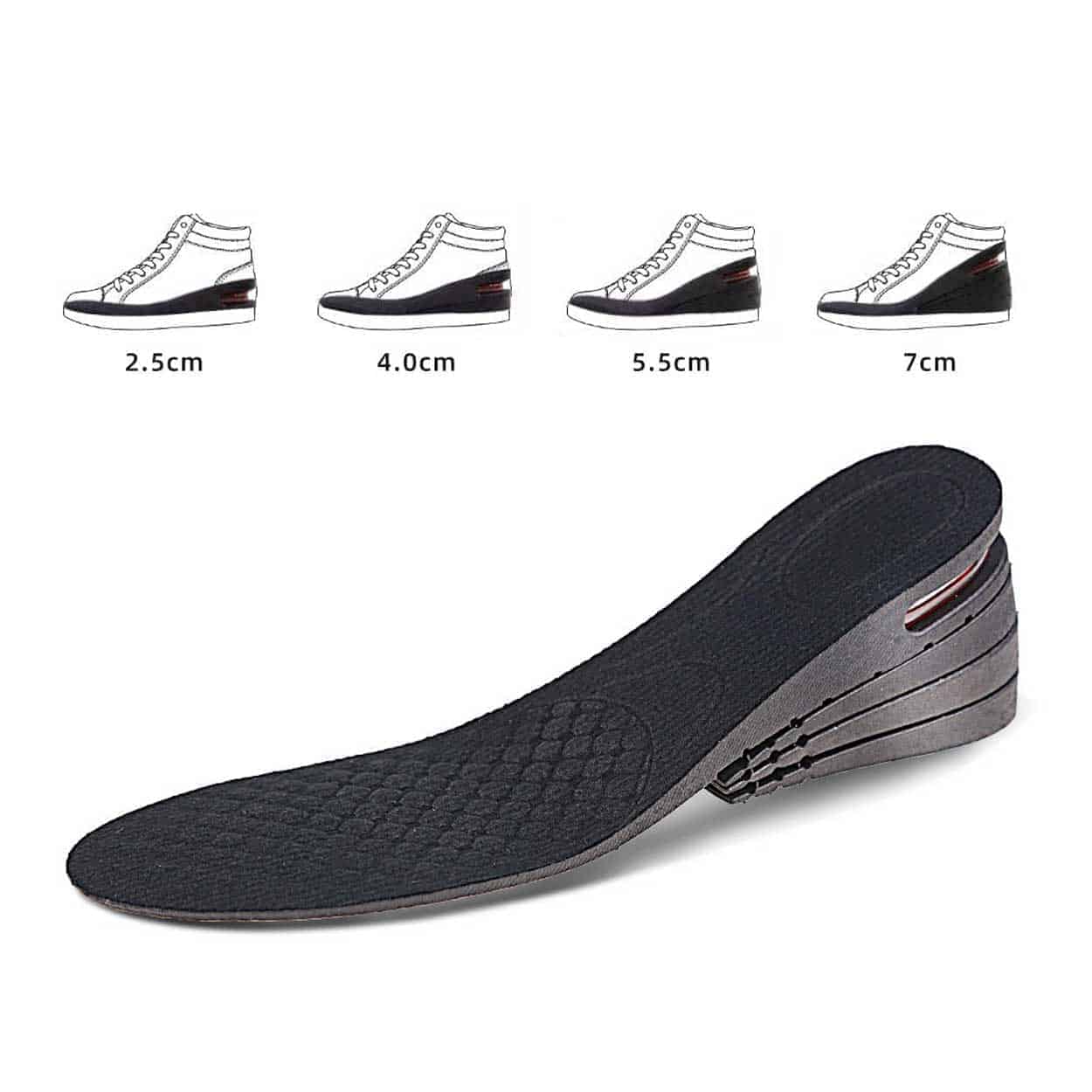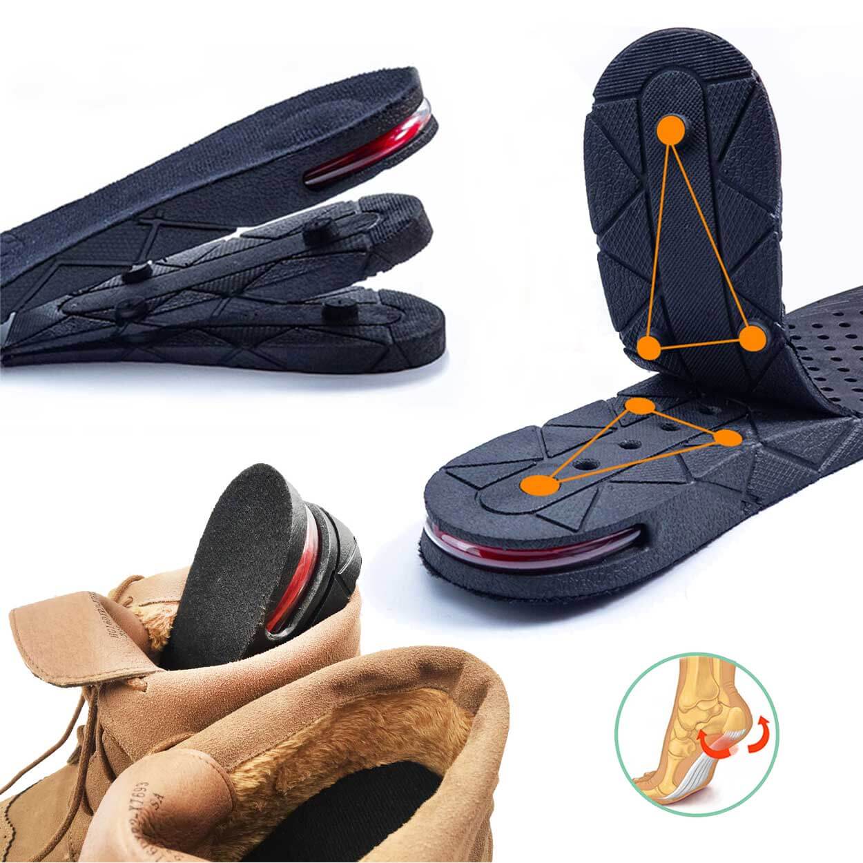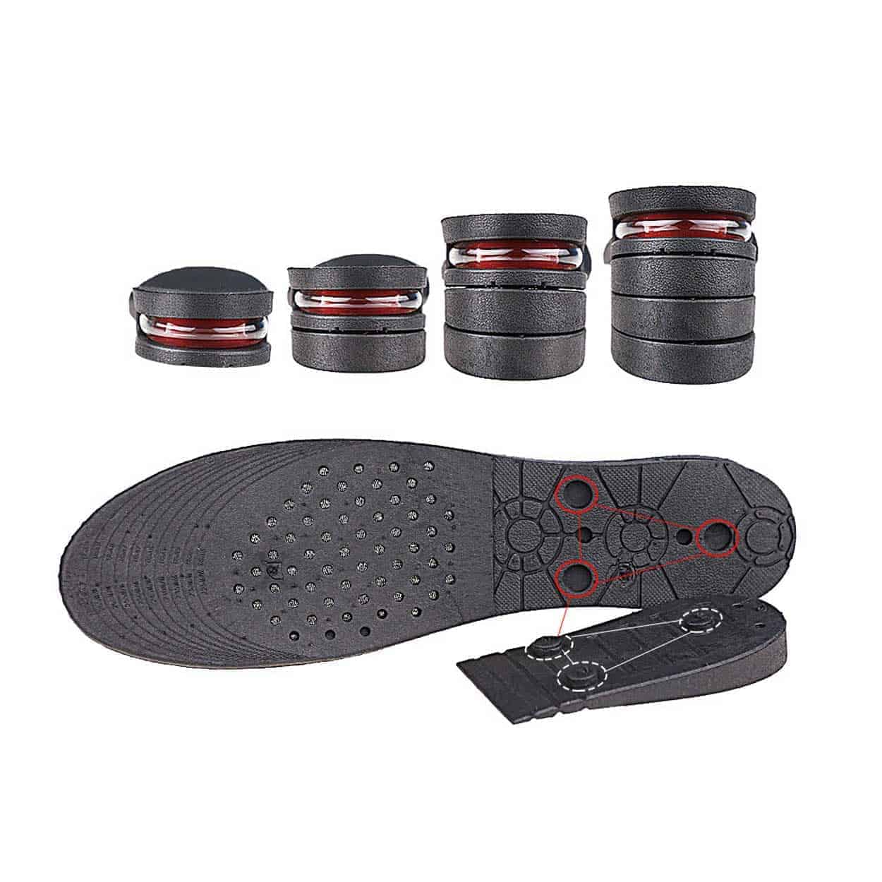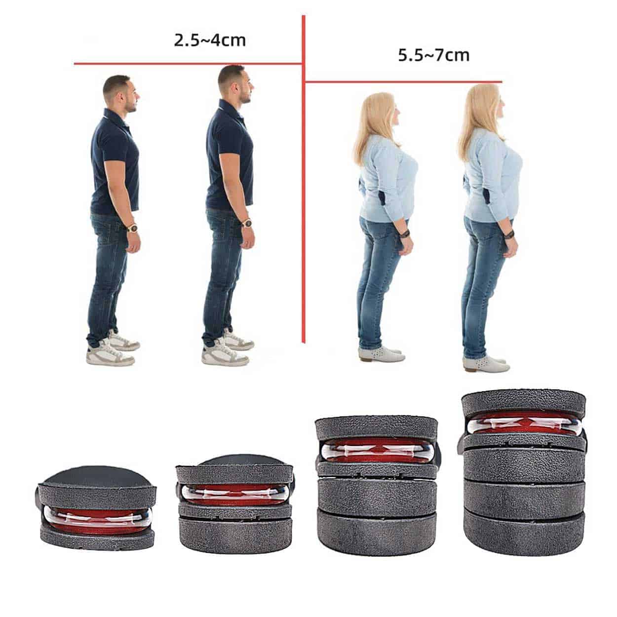 Höjande skoinlägg som ger extra längd i vanliga skor och samtidigt förbättrar komforten. Det flerdelade systemet låter dig justera höjden i steg om 2+2+3 cm, så att du kan välja 2, 4 eller upp till 7 cm höjning beroende på behov och skotyp. Inläggen kan klippas till för bättre passform och fungerar i både dam- och herrskor i storlek 35–45 (EU). Den stötdämpande hälen hjälper till att minska stötar vid gång och ger en mjukare känsla under foten.