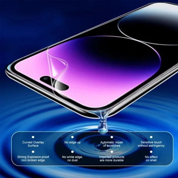 Heltäckande skärmskydd i hydrogel TPU för iPhone 14 som hjälper till att skydda skärmen mot repor, sprickor och vardagsslitage utan att störa känslan i displayen. Den tunna filmen är utformad för att ligga nära skärmen och minska upplevda kanter. Ytan är anti-fingeravtryck och HD-klassad med upp till 99% transparens för tydlig bild. Självläkande egenskaper gör att mindre repor kan minska över tid. Rengöringskit ingår för enklare montering och en ren applicering.