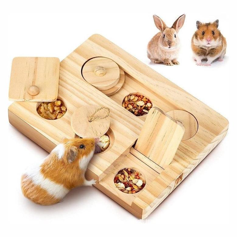 Tingelo Alla produkter Sport & Fritid Husdjur Smådjur Foderpussel / aktiveringsleksak smådjur – godisgömma slow feeder – trä