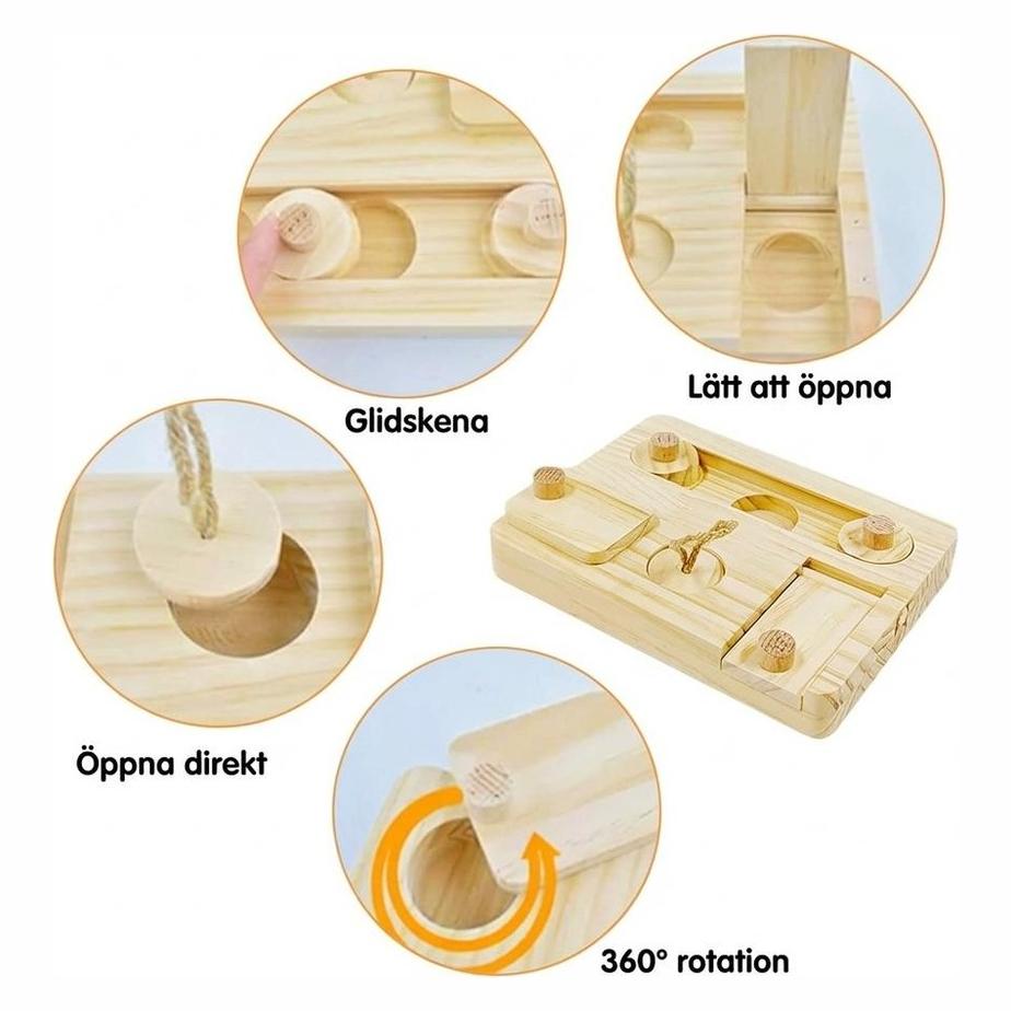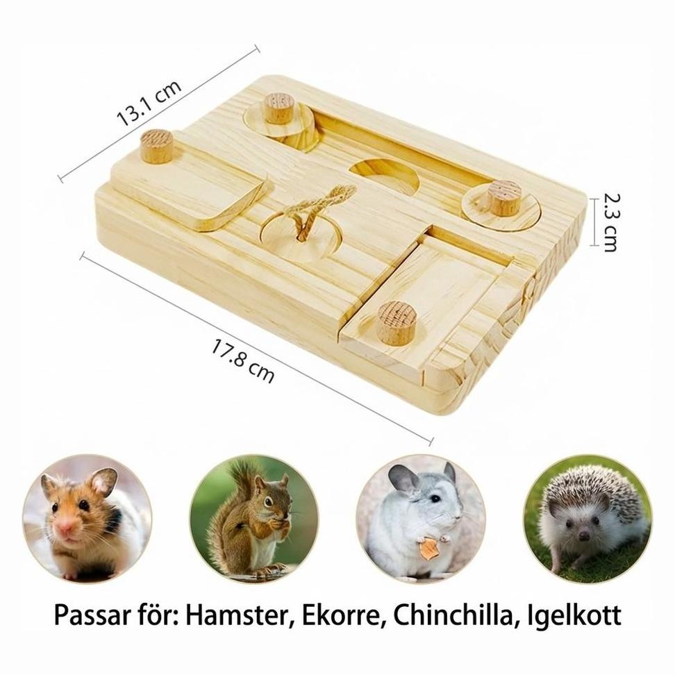 Foderpussel / aktiveringsleksak smådjur – godisgömma slow feeder – trä