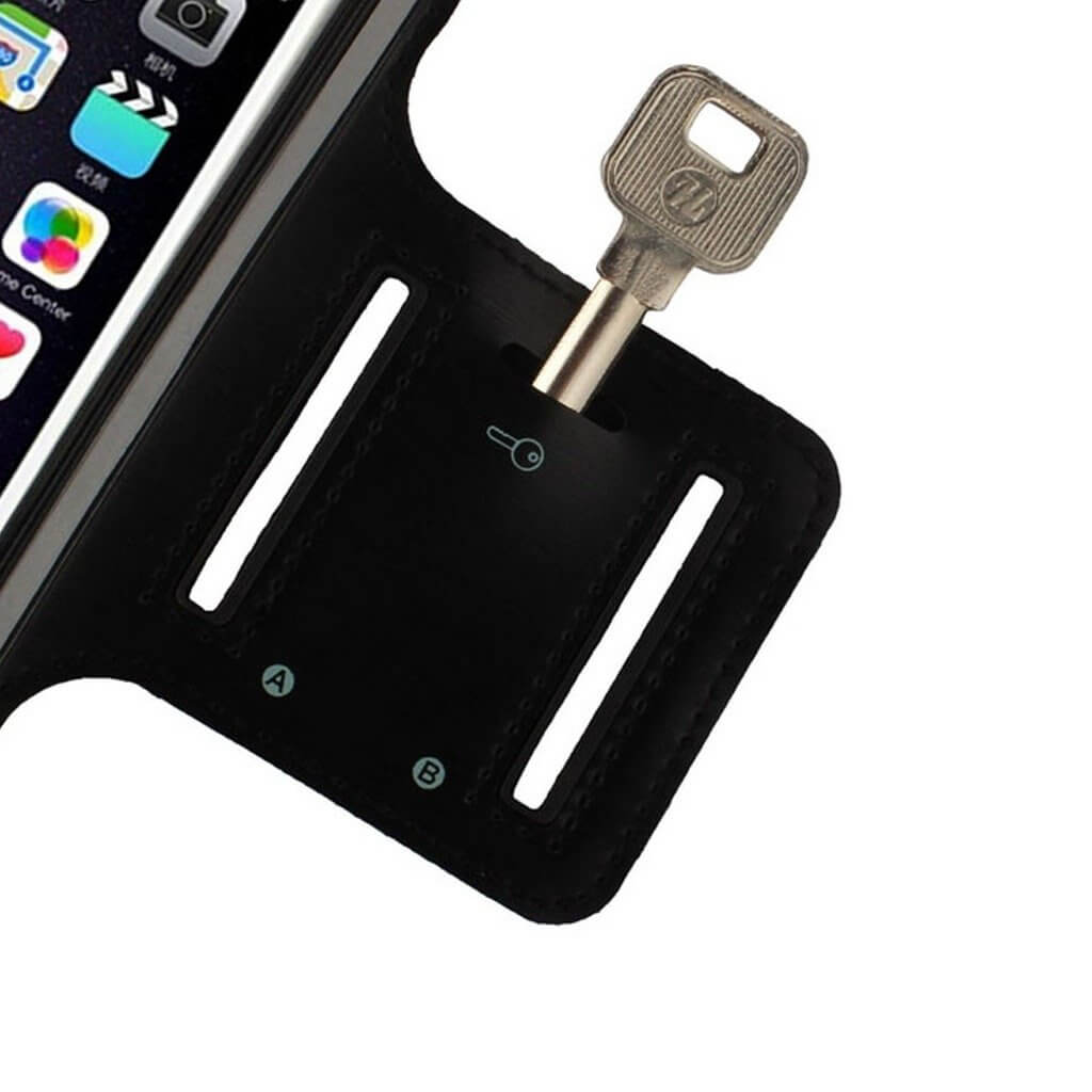 Universellt sportarmband som håller mobilen säkert på armen under träning. Passar de flesta smartphones upp till 5,5 tum och har genomskinlig framsida så att skärm och funktioner kan användas utan att ta ur telefonen. Neoprenmaterialet ger en mjuk och följsam känsla samtidigt som det skyddar mot repor och smuts. Reflexkant ökar synligheten i mörker. Kardborrejustering gör att armbandet kan anpassas efter olika armstorlekar. Inbyggt nyckelfack och hörlurshål minskar behovet av fickor vid löpning, cykling och promenader.