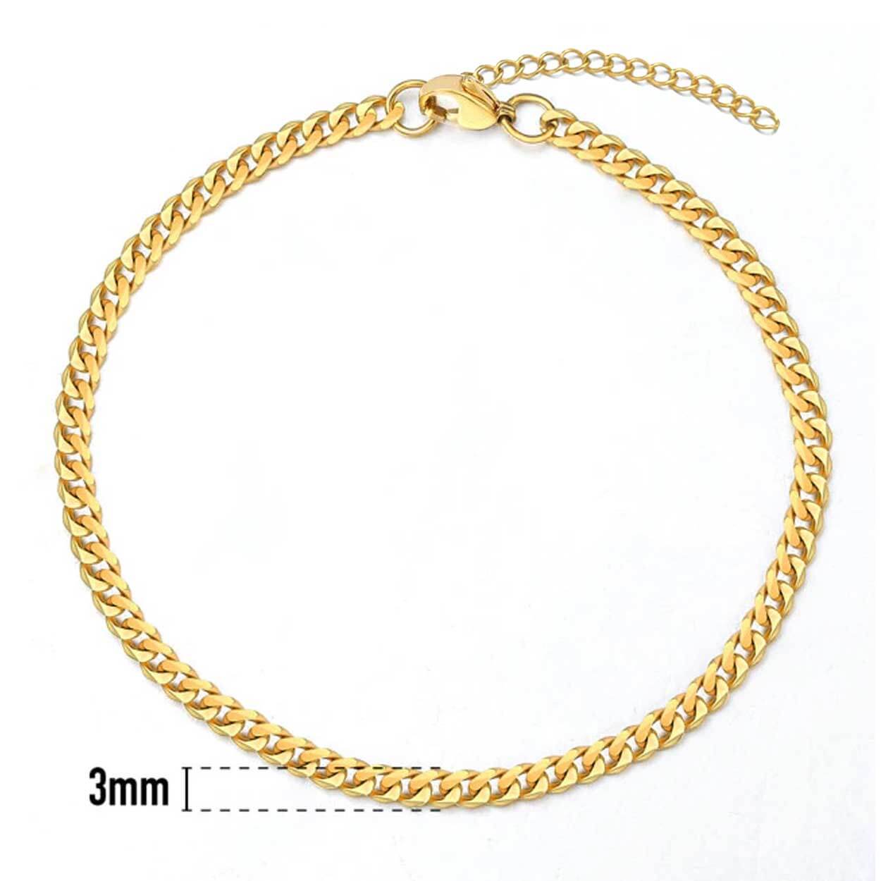Pansarlänk armband i rostfritt stål med guldpläterad yta och en smal kedjebredd på 3 mm. Längden kan justeras från 18 till 23 cm, vilket gör det enkelt att få en stabil och bekväm passform på handleden. Konstruktionen i stål ger en tålig känsla och passar för daglig användning, både ensamt och tillsammans med andra armband. Kedjelänken ger ett tydligt uttryck utan att ta över, och fungerar lika bra till vardags som till mer uppklädda tillfällen.