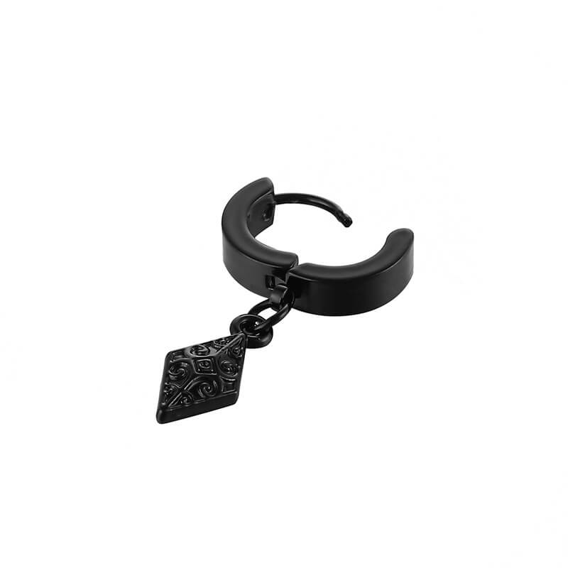 Piercingörhänge med tjock ring och hänge som ger en tydlig detalj i örat. Konstruktionen är gjord i 316L rostfritt stål, ett tåligt material som passar för regelbunden användning. Ringen kan bäras som piercing eller i örsnibb och fungerar bra ensam eller tillsammans med andra örhängen. Hänget skapar rörelse och gör att smycket syns utan att kännas överarbetat. Ett praktiskt val när du vill ha ett robust örhänge med markerad form.