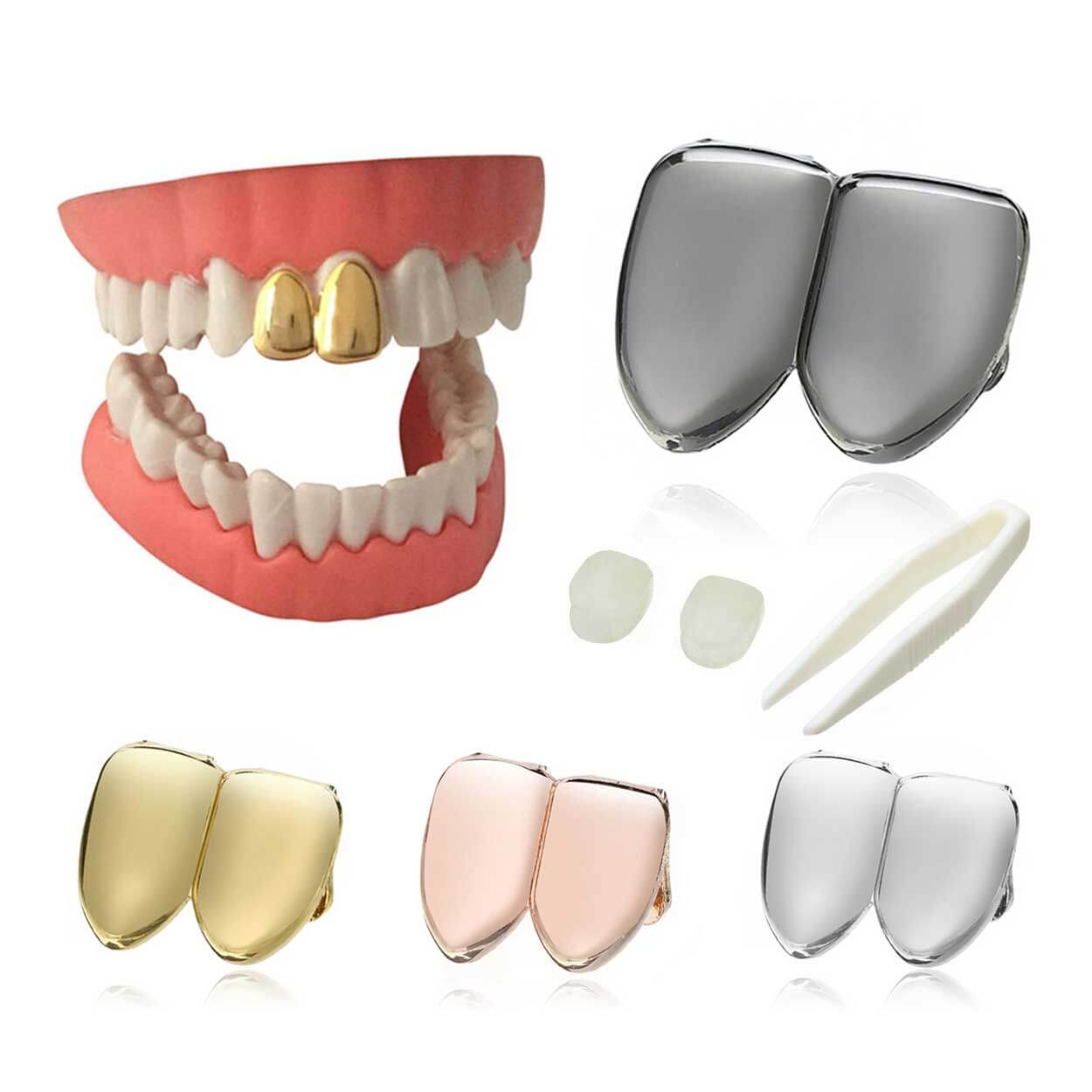 Grillz / tandsmycke – dubbelt tandsmycke – silikoninfästning