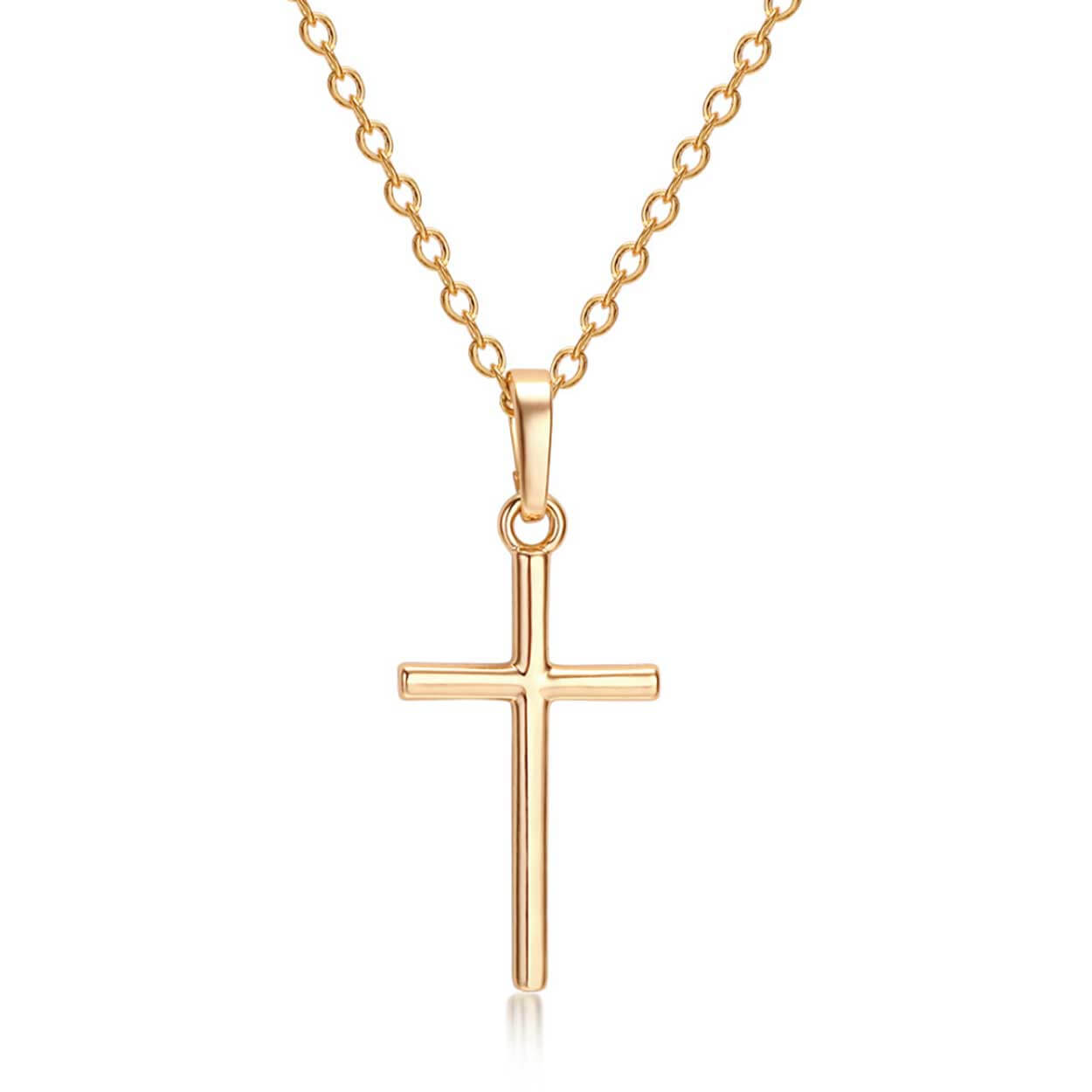 Korshalsband med tunn kedja och ett minimalistiskt korshänge som ger ett rent, diskret uttryck. Halsbandet bärs som ett klassiskt hängsmycke och passar både som ensam detalj och tillsammans med andra smycken. Kedjan är cirka 46 cm lång och ger en nära passform runt halsen. Korshänget mäter cirka 12 x 29 mm och håller en slimmad profil som fungerar bra även under skjorta eller tröja. Den låga vikten gör halsbandet bekvämt att använda under längre tid.