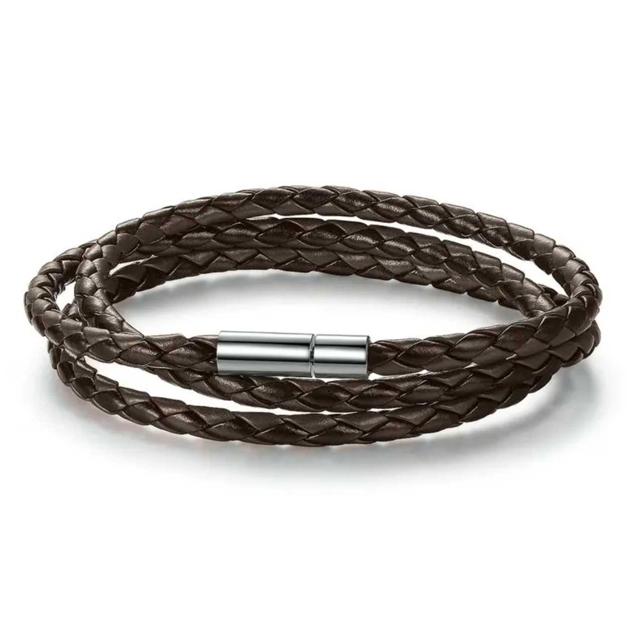 Läderarmband / flätat armband – flera varv runt handleden – konstläder, metallspänne