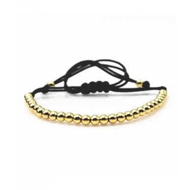 Makraméarmband med pläterade kopparkulor som ger en ren och stilren detalj på handleden. Det vävda bandet sitter bekvämt och gör armbandet lätt att kombinera med andra accessoarer, särskilt tillsammans med klocka eller i en staplad look. Kulorna har 4 mm diameter och ger ett diskret men tydligt uttryck utan att kännas klumpigt. Den låga vikten gör armbandet smidigt att bära under hela dagen, både till vardag och mer uppklädda tillfällen.