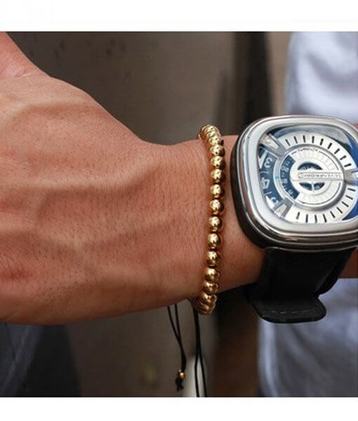Makraméarmband / herrarmband – stapling klocka – pläterade kopparkulor