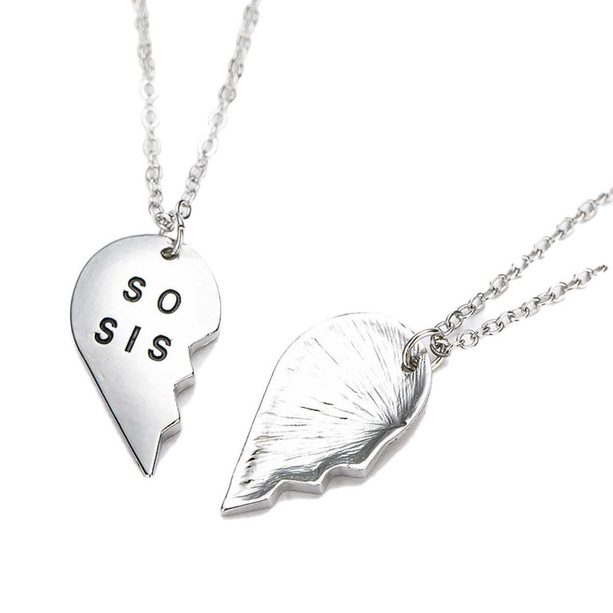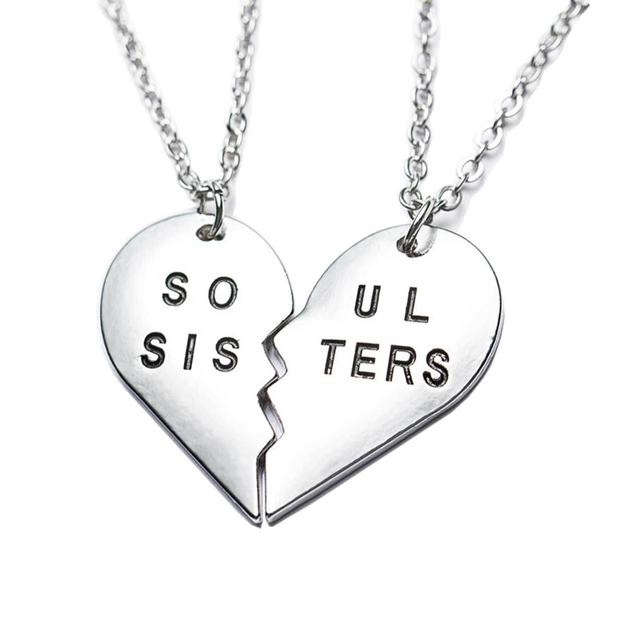 Vänskapshalsband med delbart brythjärta för två personer. Hjärtat består av två halvor som kan separeras, så att var och en bär sin del som en tydlig symbol för samhörighet. Passar som kompishalsband mellan bästa vänner eller som systerskapshalsband. Motivet har texten soul sisters och är utformat för att vara enkelt att ge bort och använda direkt. En lätt och smidig accessoar som gör det tydligt att ni hör ihop, även när ni inte är på samma plats.