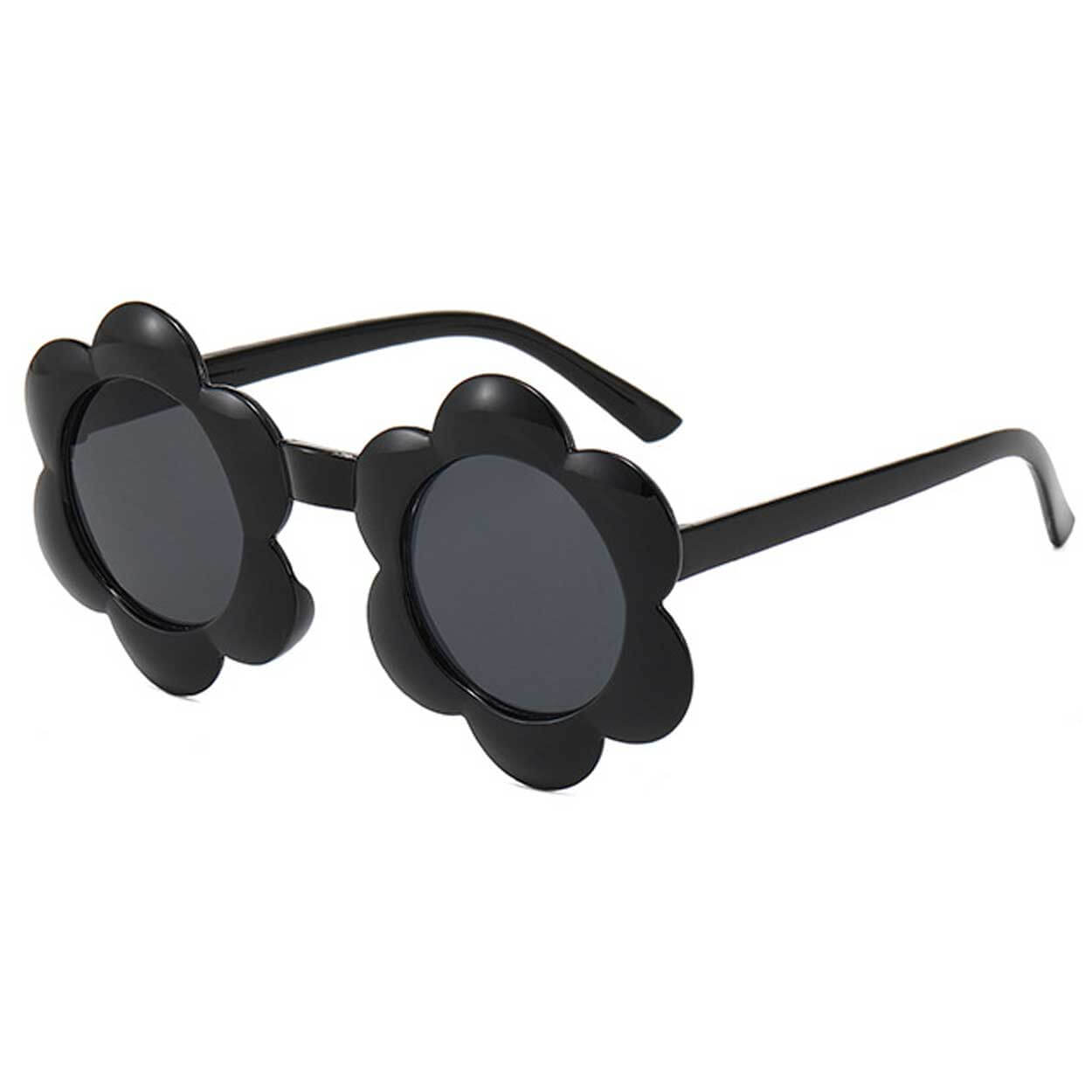 Barnsolglasögon i mindre barnstorlek med blomformad ram i plast. UV400-skydd hjälper till att blockera både UVA- och UVB-strålning vid utevistelse. Den lätta konstruktionen gör dem bekväma att bära under längre stunder. Passformen är anpassad för mindre ansikten och ger bra täckning med 49 mm linsbredd och 60 mm höjd. Ett praktiskt val för vardag, lek och utflykter när ögonen behöver skydd i solen.