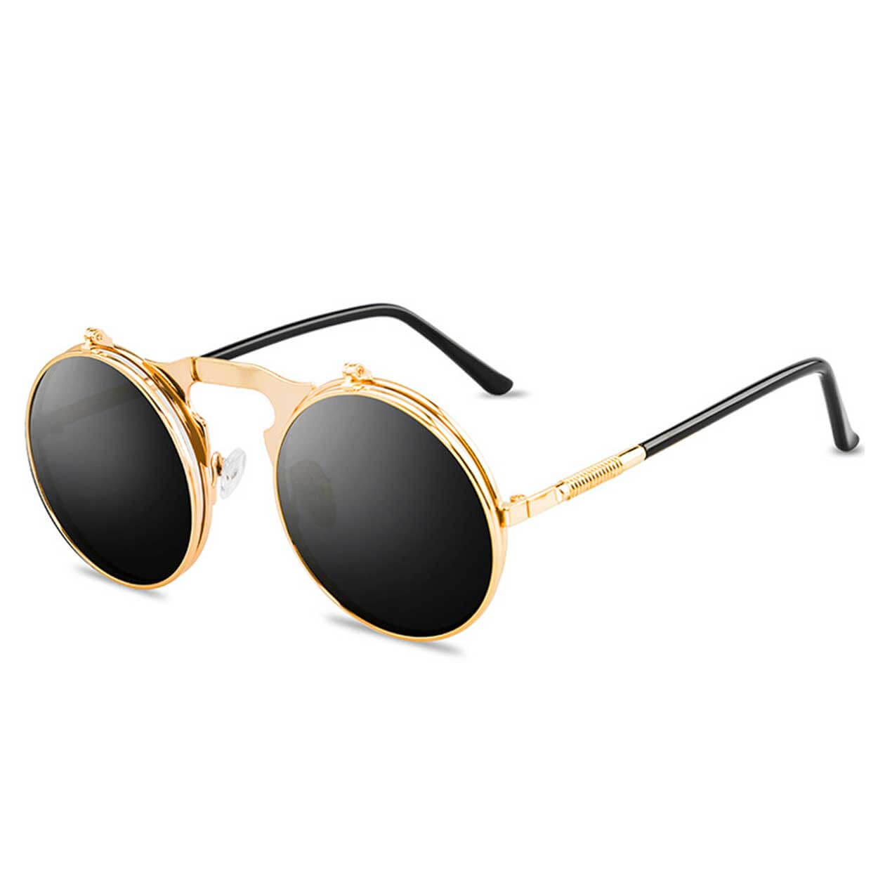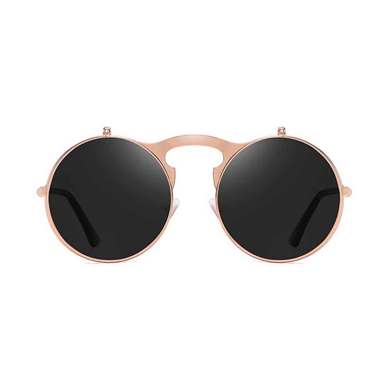 Solglasögon herr / runda solglasögon – uppfällbara linser – metallbåge, UV400