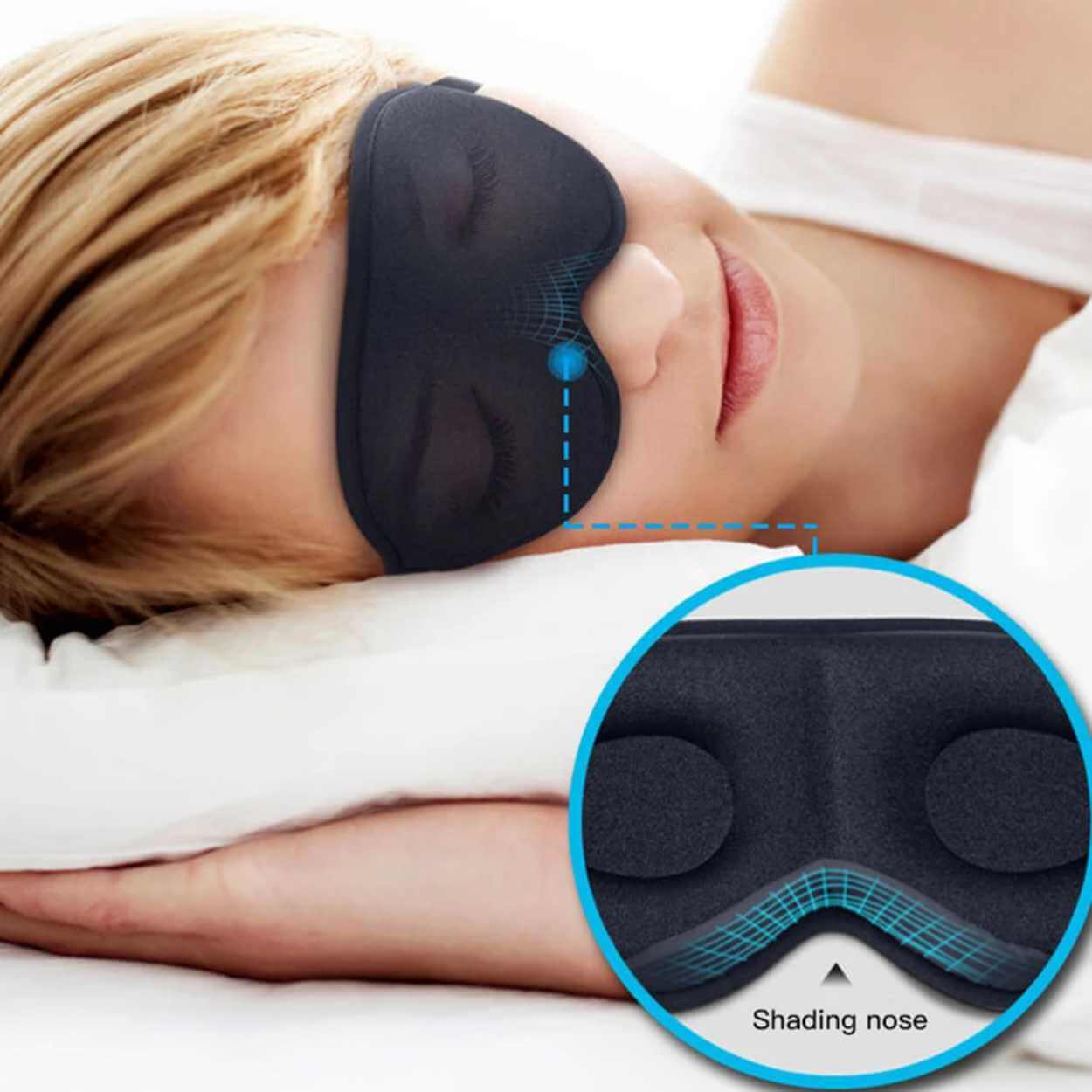 Sovmask / ögonmask – total mörkläggning, tryckfri passform – memory foam, justerbart band