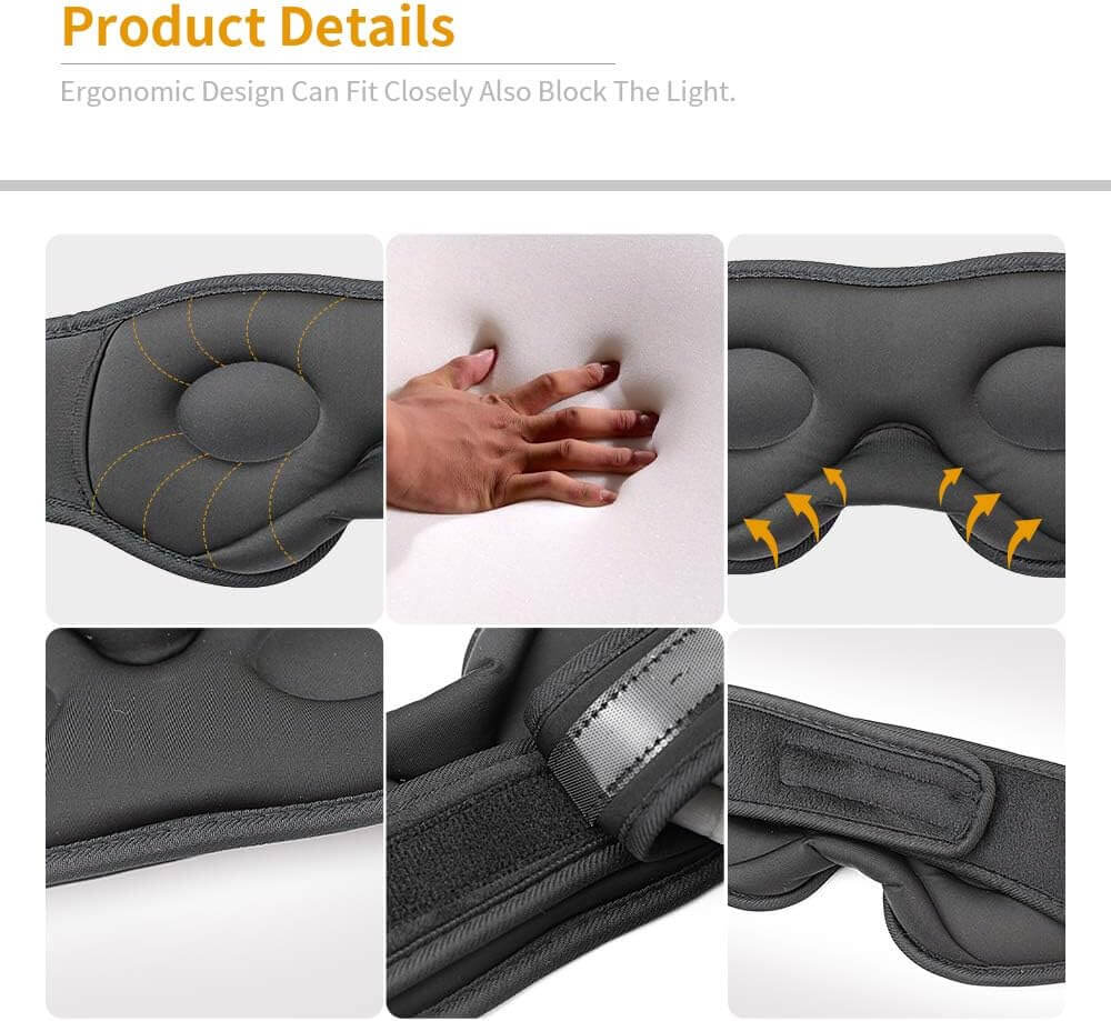 Sovmask med ljud 3D mörkläggning Bluetooth 5.0 Upp till 10 h speltid Uttagbar elektronik