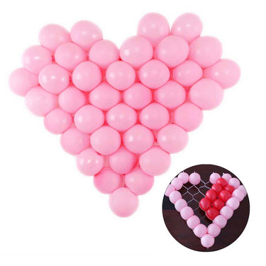 Hjärtformat ballongnät som gör det enkelt att skapa ett stort ballonghjärta till fest och firande. Nätet fungerar som en mall där uppblåsta miniballonger fästs för att ge en jämn och tydlig hjärtform. I setet ingår 200 latexballonger i miniballongstorlek, vilket ger god marginal för flera dekorationer eller extra ballonger vid montering. För ett färdigt hjärta används 38 ballonger. Passar för exempelvis jubileum, bröllop och födelsedag när en tydlig dekoration behövs.