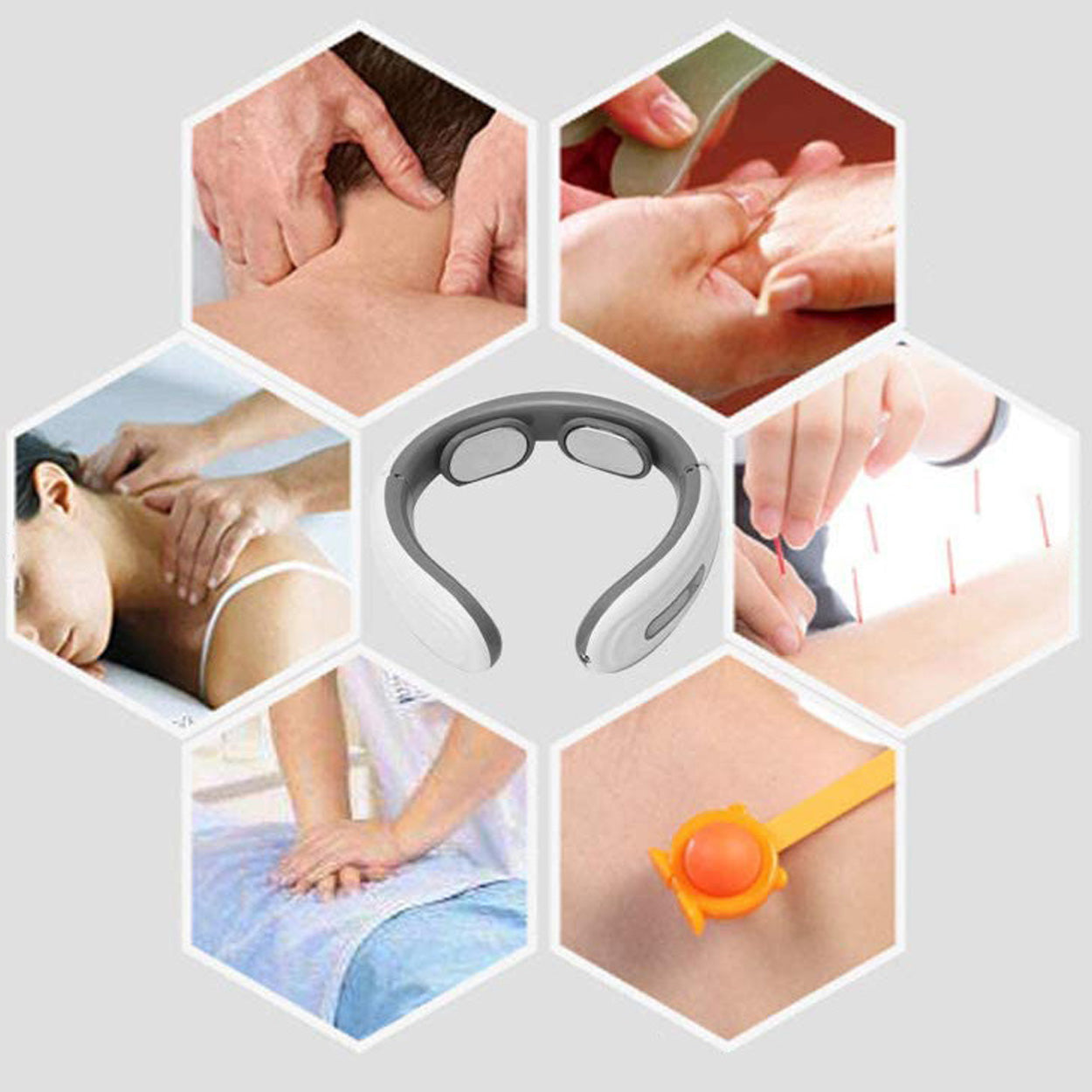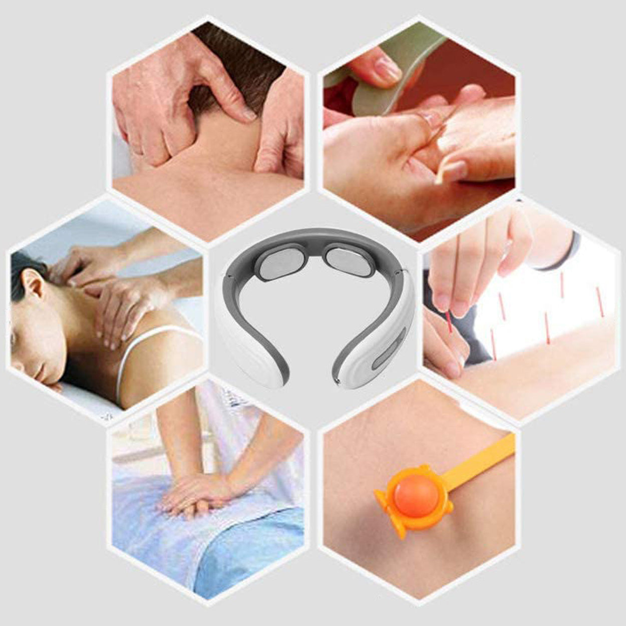 TENS- och EMS-nackmassagerare som använder lågintensiva elektriska impulser för att stimulera muskler och hjälpa till att minska stelhet i nacken. Fyra program ger olika typer av massagekänsla, och intensiteten kan justeras i 15 nivåer för att passa dagsform och behov. Enheten är enkel att använda: sätt den runt nacken, välj program och nivå och låt impulserna arbeta. Batteridrift med 2 x AAA gör den smidig utan laddning, och batterier ingår så att den kan användas direkt.