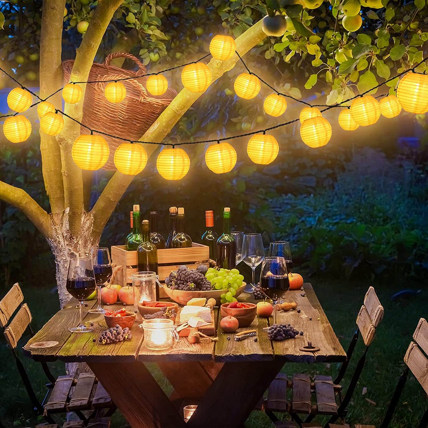 Solcellsdriven ljusslinga med 10 papperslyktor som ger ett mjukt varmvitt LED-ljus för utomhusmiljöer. Solpanelen laddar batteriet under dagen och den inbyggda ljussensorn tänder automatiskt vid skymning och släcker vid gryning. Slingan är 3,5 m lång och passar för att hängas i trädgård, på uteplats, balkong eller runt pergola och grind. Installationen är enkel och kräver varken uttag eller fasta ledningar, vilket gör den smidig att flytta och använda där ljus behövs.