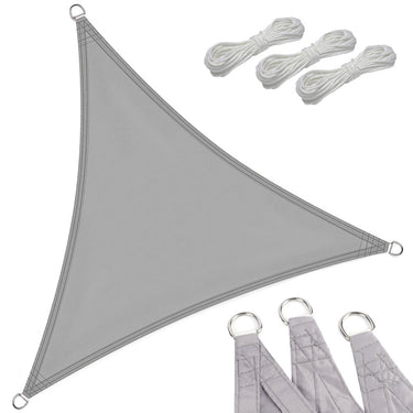 Vattentätt solsegel i triangelform som ger skugga och skydd vid lättare regn. Polyestertyget är snabbtorkande och anpassat för utomhusmiljöer där fukt och vind förekommer. Seglet monteras med metallfästen i hörnen och spänns upp med medföljande monteringssnören, vilket gör det enkelt att sätta upp över uteplats, balkong eller vid camping. Förstärkta kanter och hörn hjälper seglet att hålla formen när det sträcks. UV-skyddet ger en svalare yta under soliga dagar.