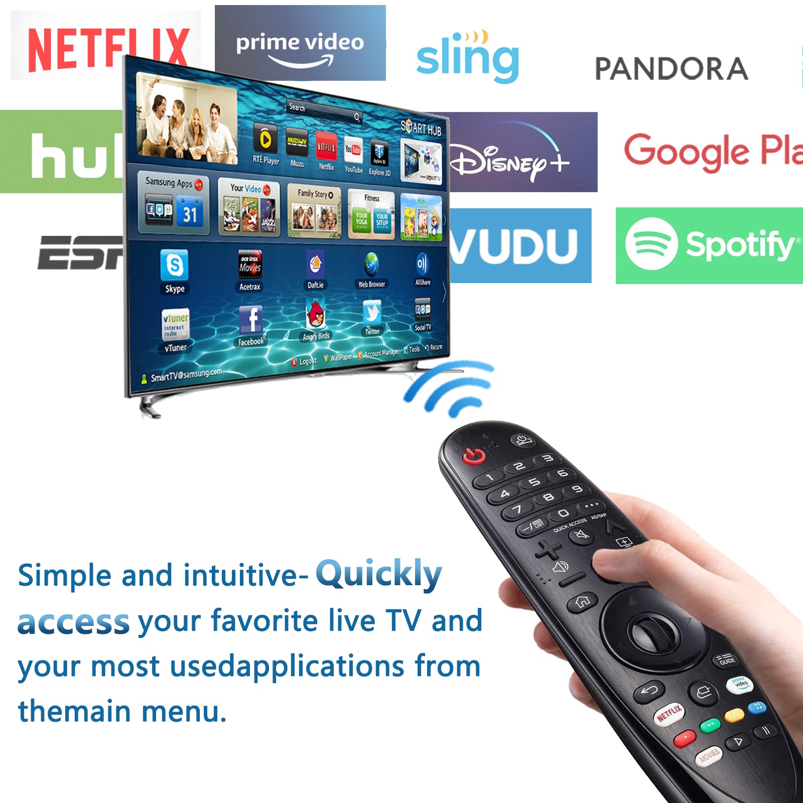 Röststyrd Magic Remote som ersätter eller uppgraderar fjärrkontrollen till LG Smart TV med WebOS. Pekfunktionen Air Mouse gör att markören följer handens rörelser för snabb navigering i menyer och appar. Röstkommandon förenklar sökning och styrning av vanliga funktioner som kanalbyte och volym. Fjärrkontrollen ansluter via IR och/eller 2,4 GHz beroende på TV-modell och paras enkelt ihop vid installation. Drivs av 2 AA-batterier som köps separat.