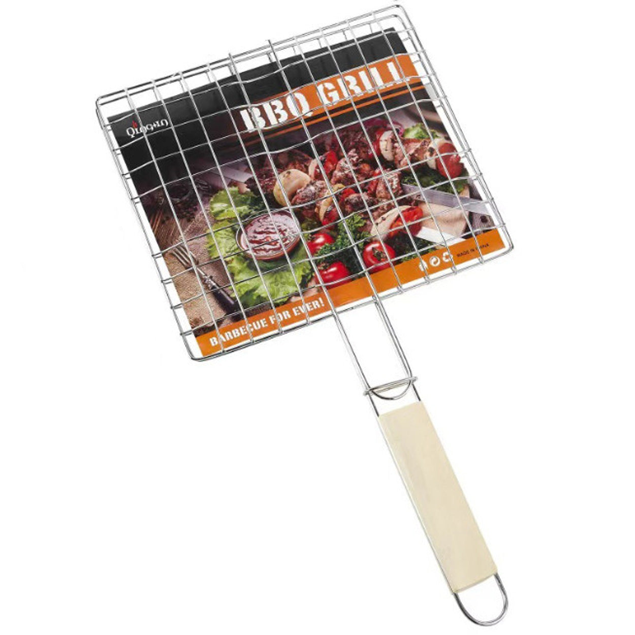 Grillhalster / grillgaller – grillning av kött fisk grönsaker – metall, trähandtag