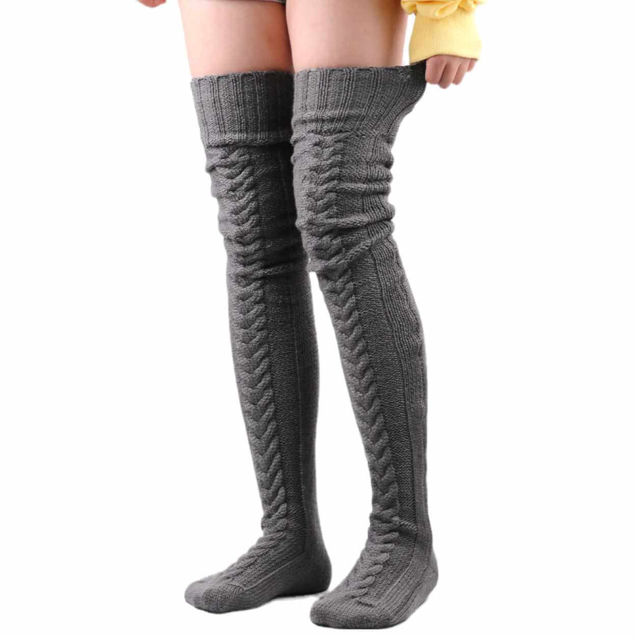 Stickade knästrumpor i ull som ger extra värme när temperaturen sjunker. Längden är utformad för att sitta över knäna och nå upp på låren, vilket gör dem användbara både som värmande lager och som ett tydligt plagg i en outfit. Det mjuka, elastiska materialet ger en följsam passform som känns bekväm vid rörelse. Strumporna kan tvättas i tvättmaskin, vilket gör dem enkla att använda ofta under säsongen.