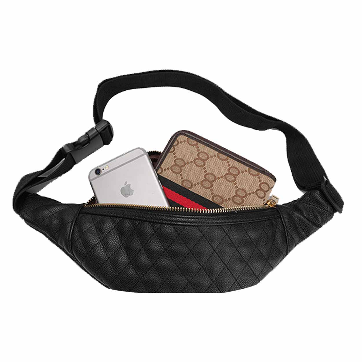 Quiltad midjeväska i skinnimitation som ger smidig förvaring när du vill ha händerna fria. Huvudfacket stängs med dragkedja och rymmer vardagssaker som mobil, nycklar, plånbok, pass och powerbank. Väskan kan bäras runt midjan eller som crossbody för flexibel användning beroende på aktivitet och klädsel. Det kompakta formatet gör den lätt att ta med utan att kännas klumpig, samtidigt som du får ordning på det viktigaste nära kroppen.