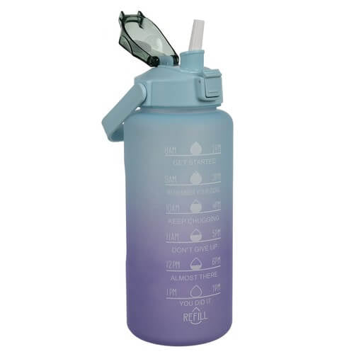 Vattenflaska / träningsflaska – tidsmarkör, sugrör – 2 l, PP, silikonpackning