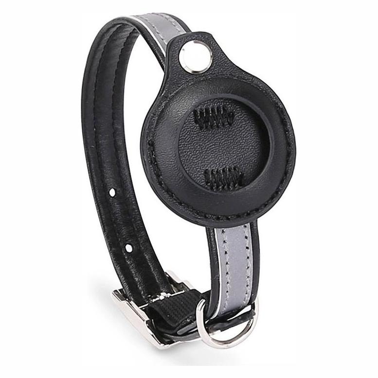 AirTag-halsband-katt-sma-hundar-sparning-och-synlighet-PU-reflexdetalj-integrerad-hallare-Svart-S