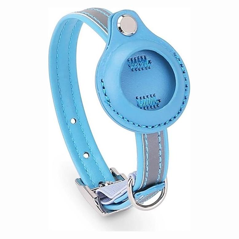 AirTag-halsband-katt-sma-hundar-sparning-och-synlighet-PU-reflexdetalj-integrerad-hallare-Bla-S