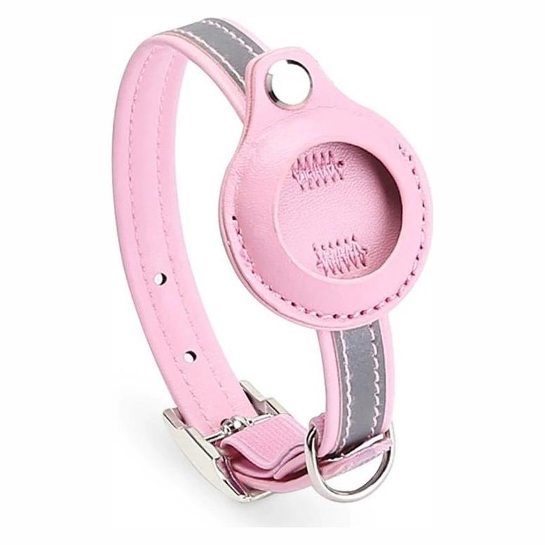AirTag-halsband-katt-sma-hundar-sparning-och-synlighet-PU-reflexdetalj-integrerad-hallare-Rosa-S