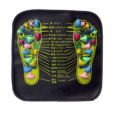 Akupressurmatta för fötter som ger tryckpunktsmassage och stimulerar zonterapipunkter under foten. Mattan används genom att stå eller sitta med fötterna på ytan och låta trycket arbeta över tid. Metoden är känd från akupressur och akupunktur och kan bidra till att minska spänningar och ömhet i fötterna, vilket ofta upplevs som avslappnande även för resten av kroppen. Formatet 34 x 34 cm gör den enkel att använda hemma och lätt att förvara mellan passen.