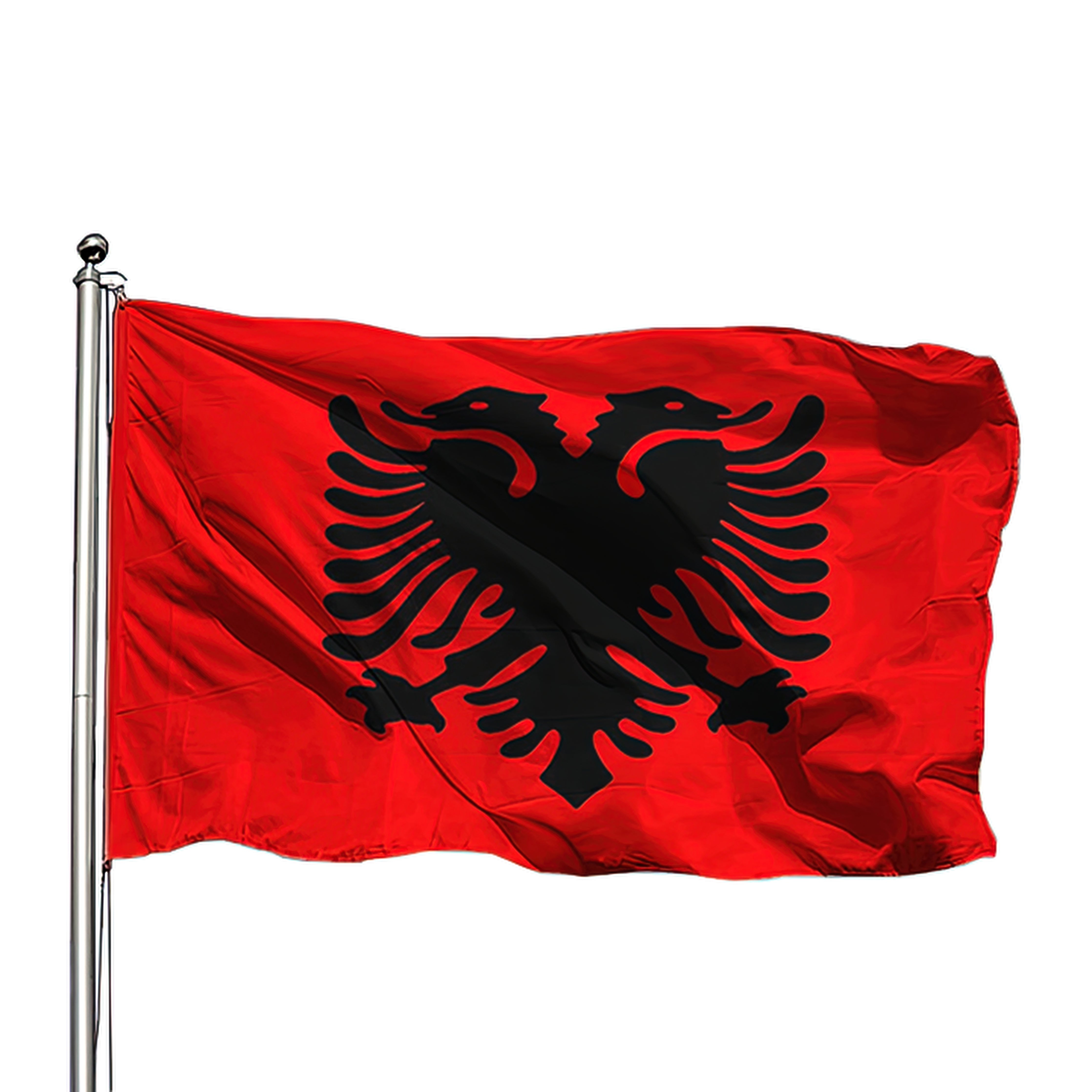 Albanienflagga / landsflagga – upphängning vägg flaggstång – polyester, mässingsöglor