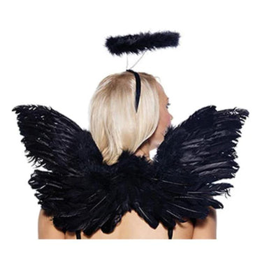 Ängelgloria på diadem som gör den enkel att bära under maskerad och cosplay. Glorian är klädd med fjädrar och ger en tydlig ängelkänsla, samtidigt som den fungerar bra för ett mer skräckinspirerat uttryck. Diademfästet hjälper den att sitta på plats utan att behöva fästas i håret. One size gör att den passar både vuxna och barn. Kombinera gärna med valfria vingar eller andra accessoarer efter tema. Vingar ingår inte.