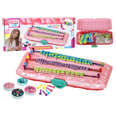Armbandstillverkningskit för barn som vill skapa egna flätade armband hemma eller på resan. Kitet levereras i en förvaringslåda och innehåller material som garn, färgade gummiband och pärlor, samt plastspikar och elastiska band som ger ett stabilt stöd under flätningen. Runda pärlor och klistermärken gör det enkelt att variera uttrycket och sätta en personlig prägel på varje armband. Instruktioner ingår för att snabbt komma igång. CE-märkt och uppfyller EN71. Rekommenderad ålder från 3 år.
