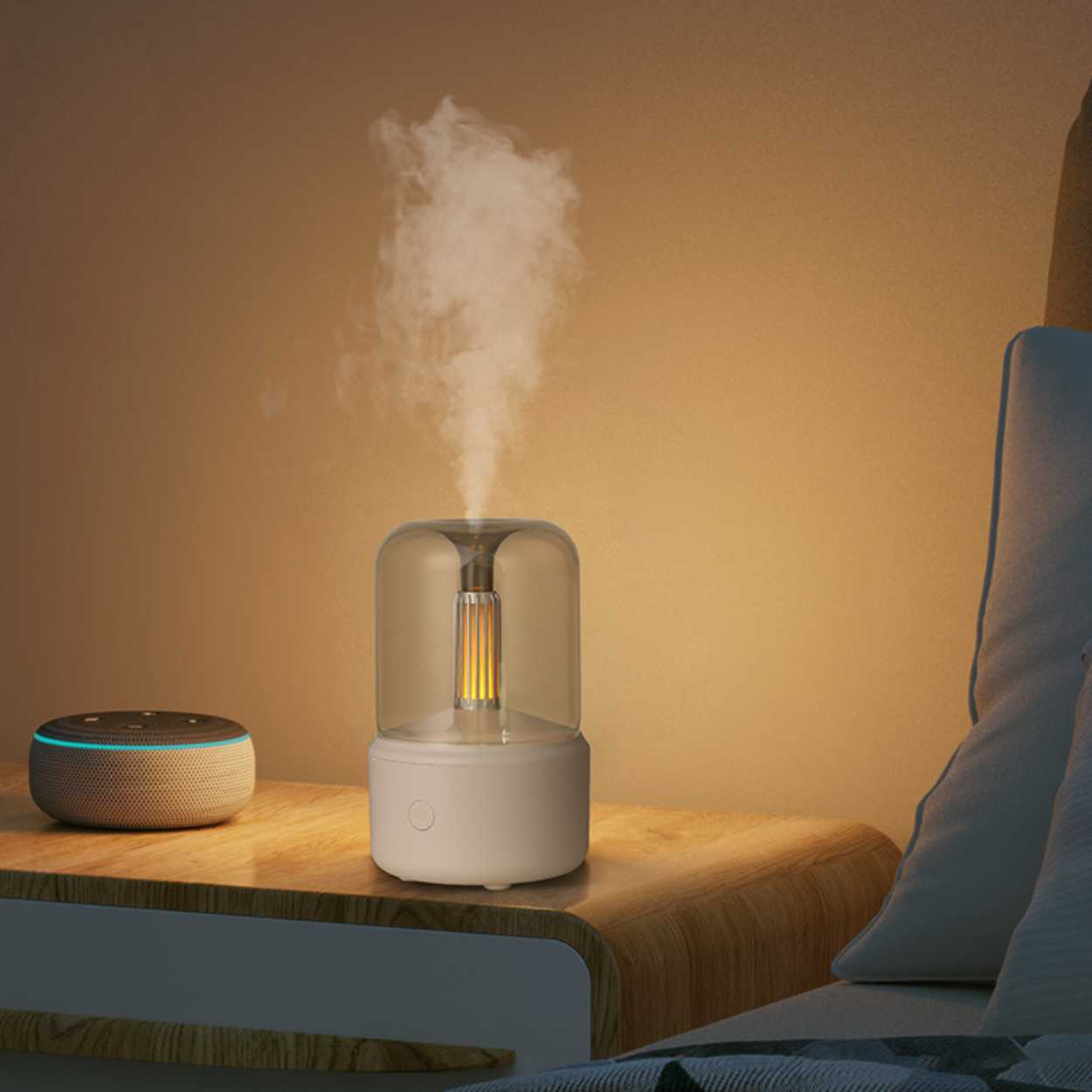 Aroma diffuser och luftfuktare som sprider doft och fin dimma för ett behagligare inomhusklimat. Enheten har inbyggd belysning med en ljuseffekt som påminner om ett levande ljus och kan även användas som nattljus. Vattentanken rymmer 120 ml och ger cirka 8–12 timmars drift med en sprayvolym på 10–15 ml per timme. Droppa eterisk olja direkt i vattnet utan bomullsfilter. Automatisk avstängning ökar säkerheten. Ansluts via USB Type-C och styrs med en knapp.