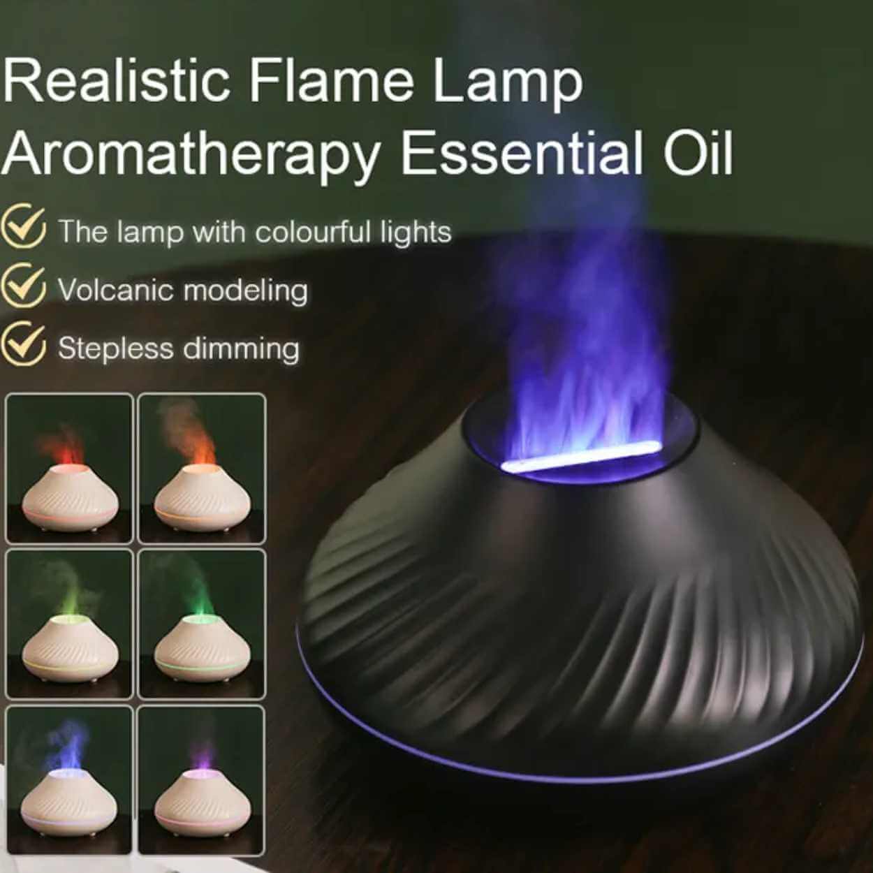 Aromadiffuser som kombinerar luftfuktning och doftspridning med en flamliknande ljuseffekt. Fyll behållaren med vatten och droppa eterisk olja direkt i vattnet, utan bomullsfilter. Ultraljudstekniken ger en fin dimma på cirka 15–20 ml/h och räcker normalt 6–9 timmar vid 130 ml kapacitet. Inbyggt smart chip ger trygg användning genom automatisk avstängning när vattnet tar slut. Drivs via USB Type‑C och passar på skrivbord, nattduksbord eller i vardagsrum.