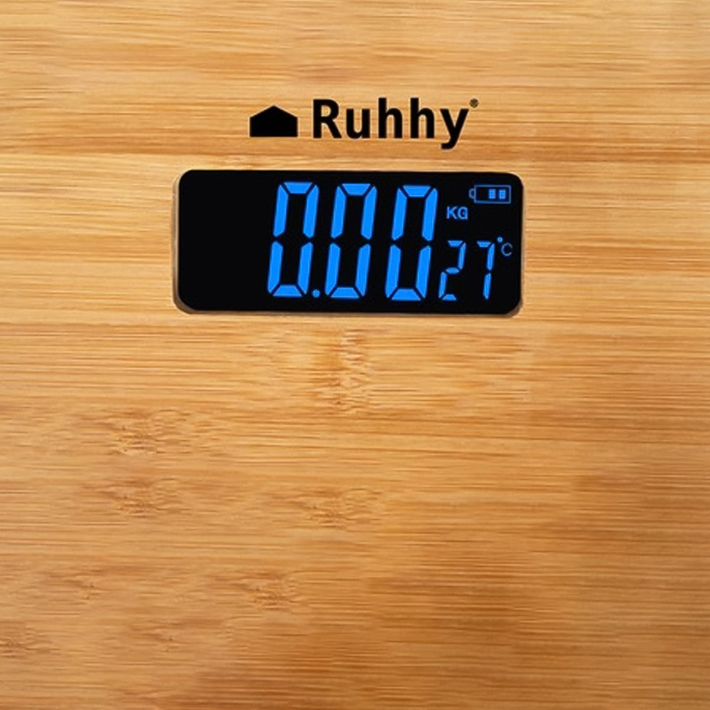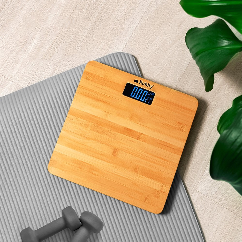Badrumsvåg / personvåg – viktmätning hem – bambu, 7–180 kg, temperaturvisning