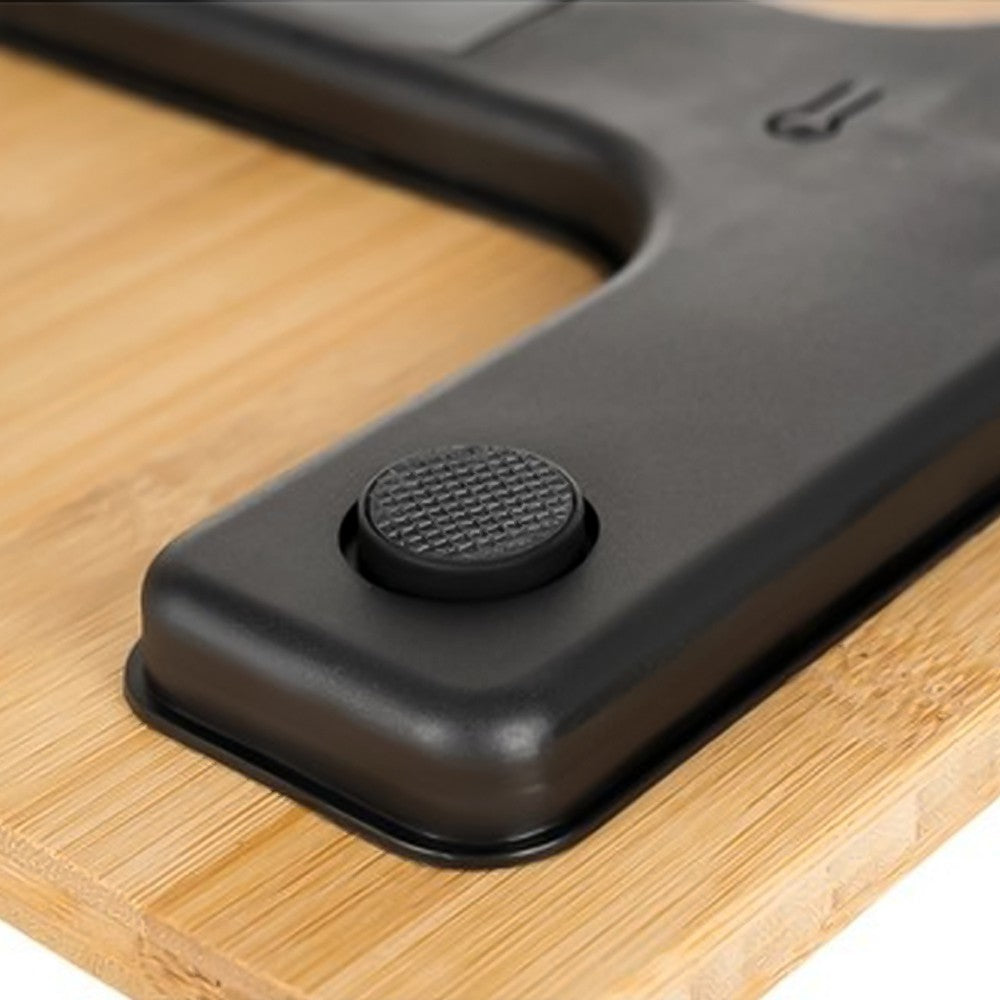Digital badrumsvåg i bambu för enkel och exakt viktmätning hemma. LCD-displayen ger snabb och tydlig avläsning, och vågen mäter från 7 till 180 kg. Autoavstängning efter 8 sekunder minskar batteriförbrukningen, medan batteriindikatorn visar när det är dags att byta. Displayen kan även visa aktuell rumstemperatur, vilket gör den praktisk i badrumsmiljö. Halkfria fötter ger stabilt grepp mot golvet för säkrare användning.