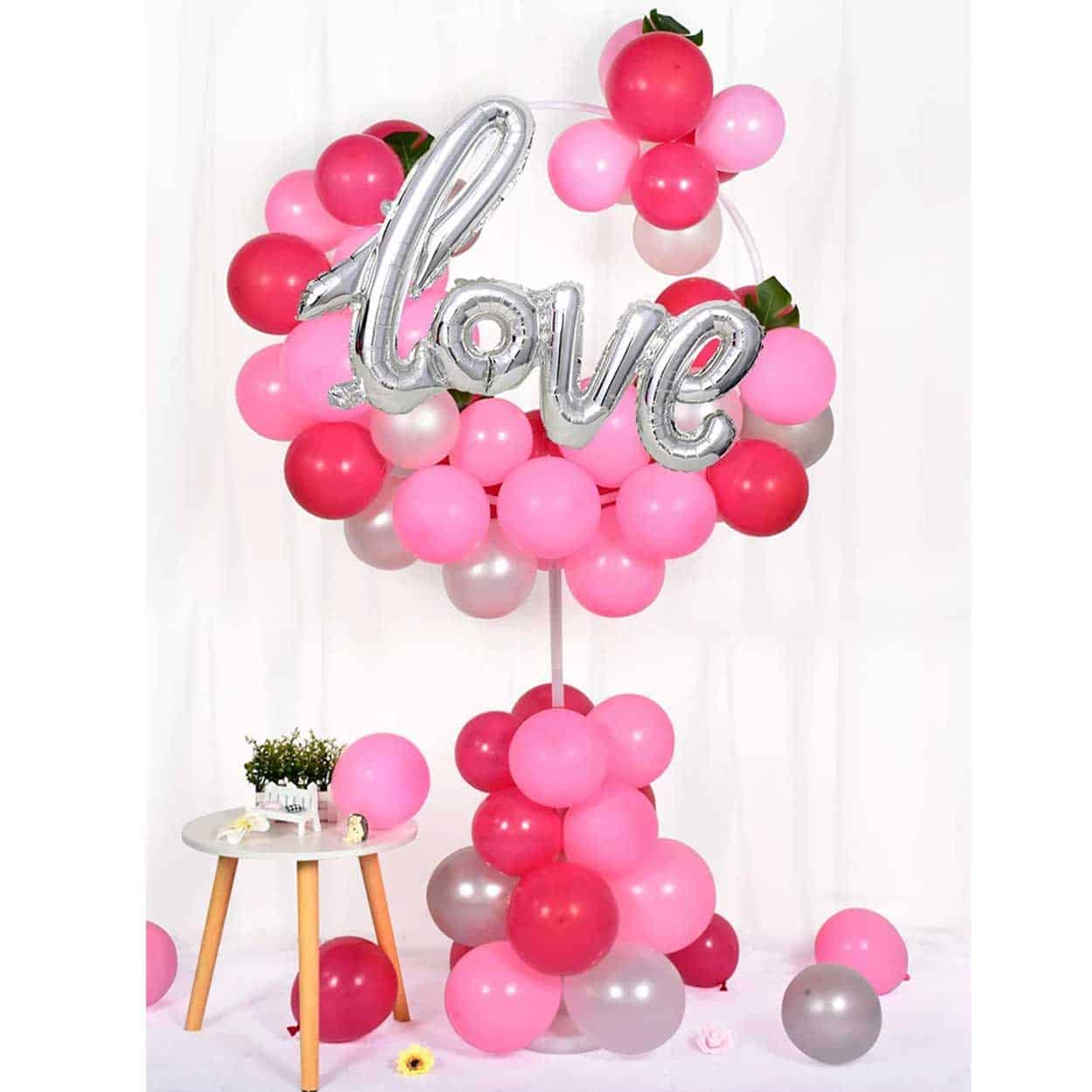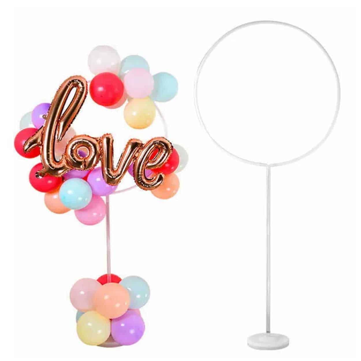 Runt ballongställ som gör det enkelt att bygga en ballongbåge och skapa en tydlig dekoration till fest, födelsedag och event. Den runda formen hjälper ballongerna att sitta jämnt och ger ett prydligt resultat utan avancerade verktyg. Stället fungerar universellt med de flesta ballonger och kan användas som fristående blickfång vid entré, fotohörna eller dessertbord. Montera ställningen, fäst ballongerna och justera tätheten efter önskat uttryck.