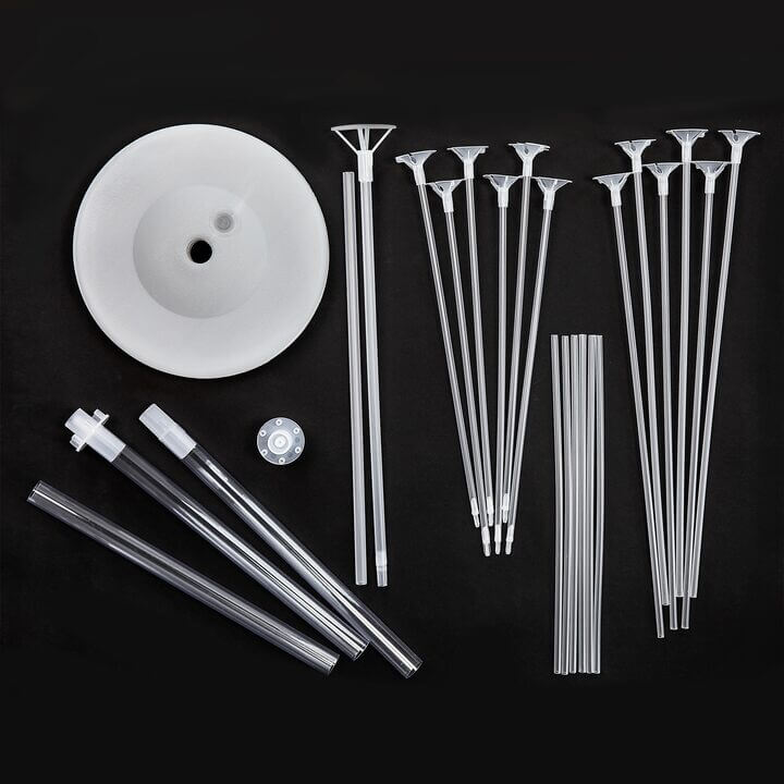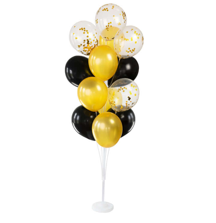 Ballongställ på 1,6 m som gör det enkelt att bygga ett prydligt ballongarrangemang i flera nivåer. Stället har 13 hållare och passar de flesta typer av ballonger, vilket gör det användbart för fest, event och dekorationer där ballonger ska stå fristående. Den genomskinliga konstruktionen håller fokus på ballongerna och ger ett rent intryck i rummet. Använd stället för entréer, buffébord eller fotohörnor när du vill samla ballonger på en tydlig yta utan att fästa i vägg eller tak.