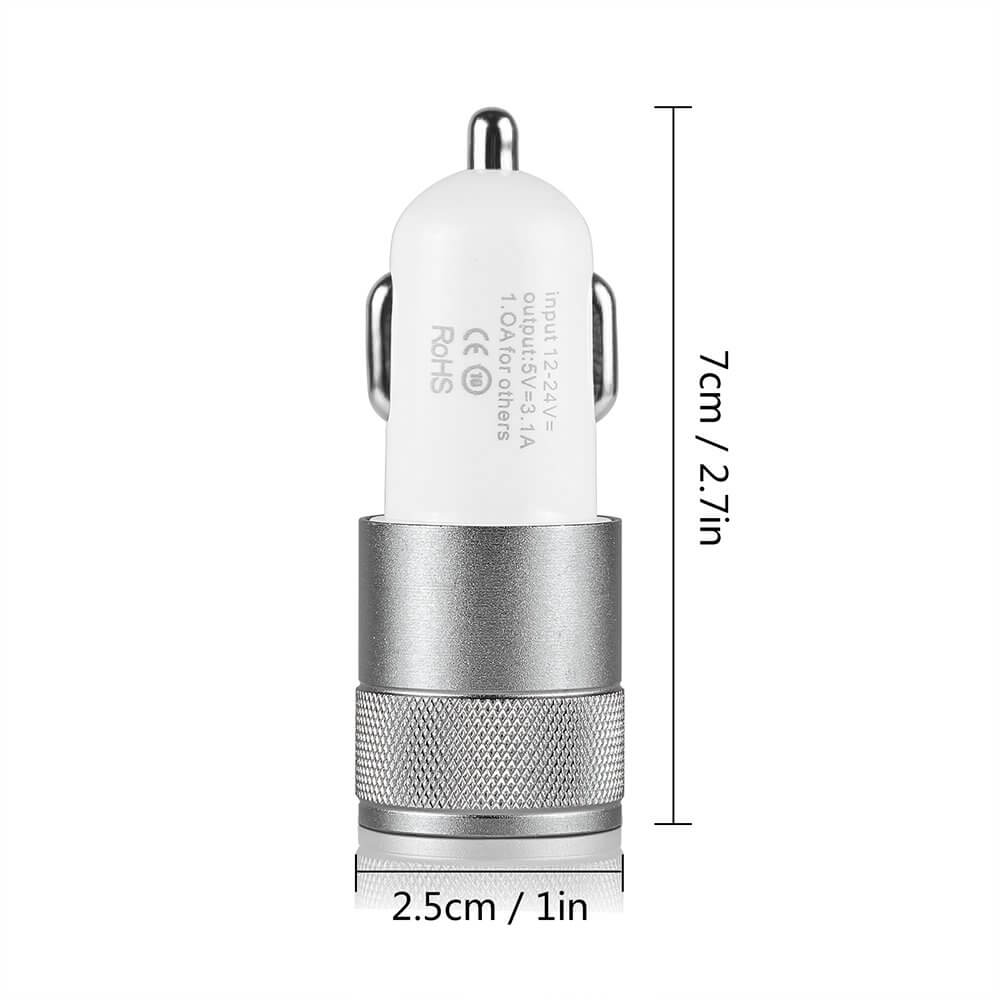Billaddare med dubbla USB-portar för samtidig laddning av två enheter i fordon. Ansluts till 12–24 V cigarettändaruttag och ger 5 V utström med total kapacitet upp till 3,1 A för snabb och stabil laddning. Inbyggt överströmsskydd och intelligent styrning hjälper till att skydda anslutna enheter mot överladdning. Fungerar med vanliga laddkablar för Lightning, Micro USB eller USB-C och passar därmed de flesta telefoner och andra USB-laddade tillbehör.