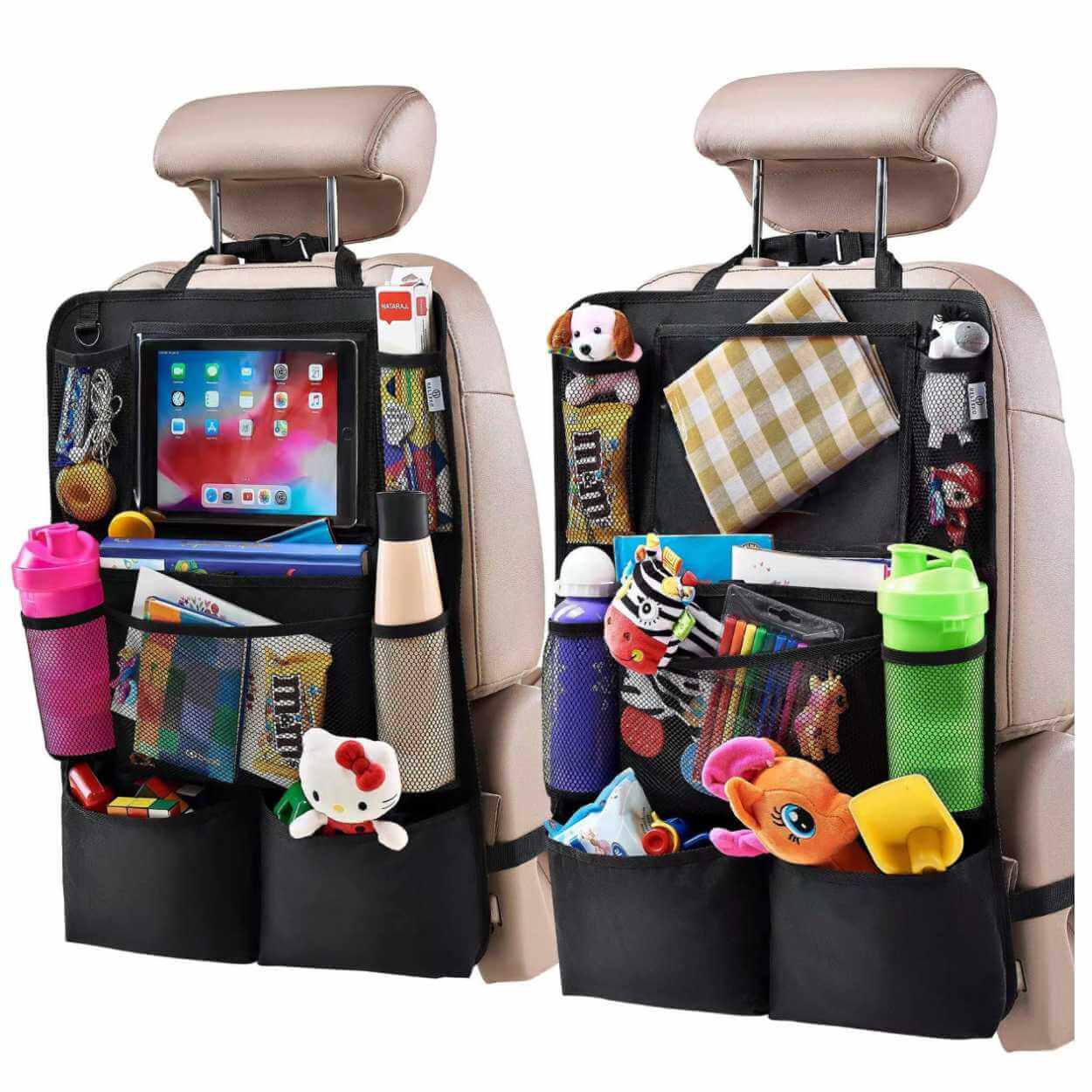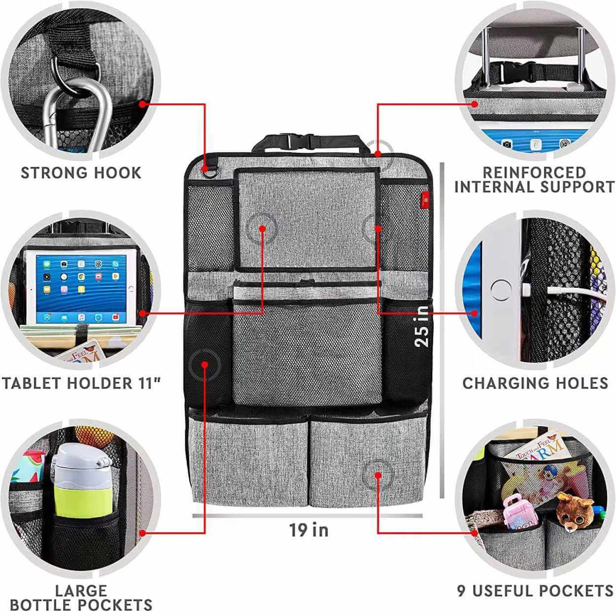 Bilsätesorganisatör / ryggstödsficka – ordning i baksätet – surfplattefack, vattentät yta
